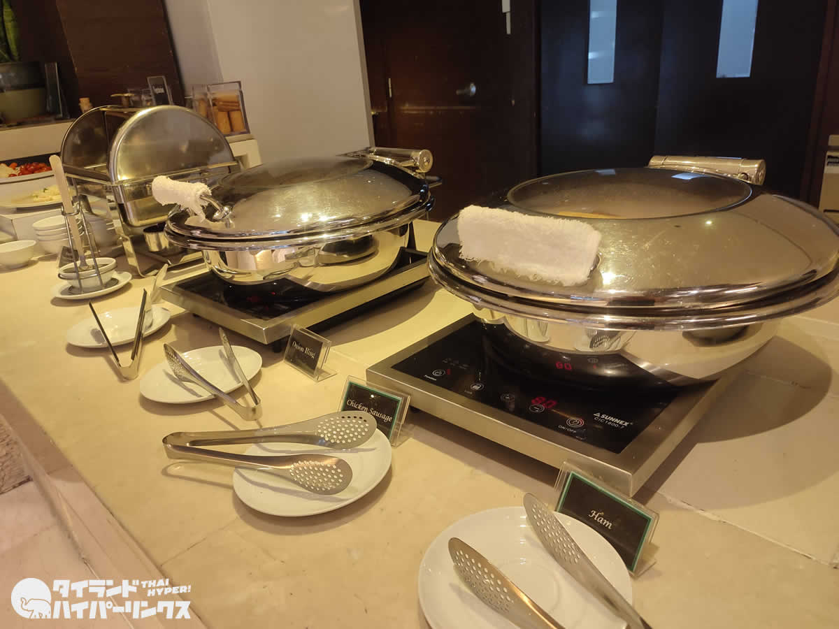 「ジャスミンリゾートホテル」の朝食ビュッフェは、サラダやチーズにハム、卵料理のコーナー、タイヌードル、チャーハンや焼きそばに、各種惣菜など、普通のホテルビュッフェと変わらずラインナップかと思いきや・・・