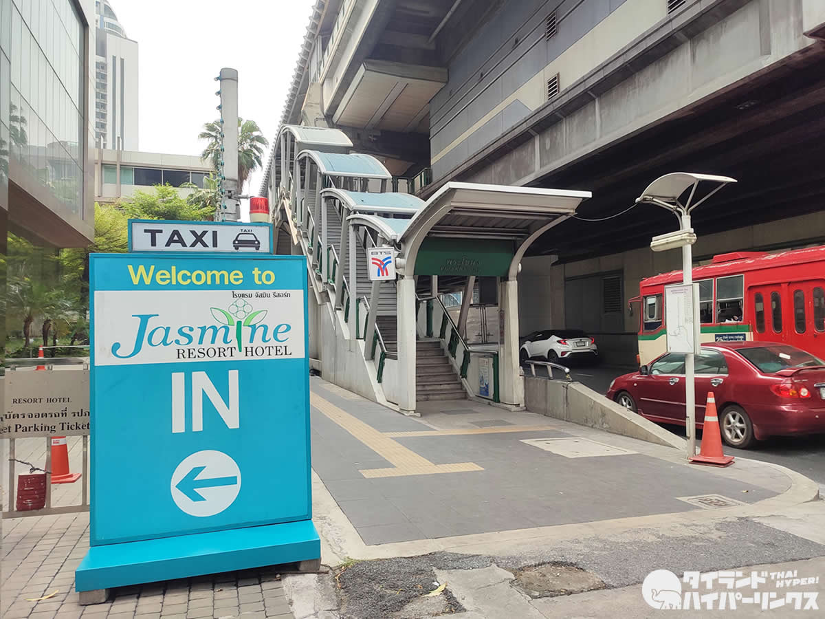 「ジャスミンリゾートホテル」で何よりもすごいのは、その立地。なんとBTSプラカノン駅の真ん前、実際に駅までは徒歩数十秒という場所にあるので、BTS(バンコク都市鉄道、通称スカイトレイン)を利用するという方々にとって最高ですね。ちなみにBTSプラカノン駅からBTSアソーク駅までは15分ほどです。