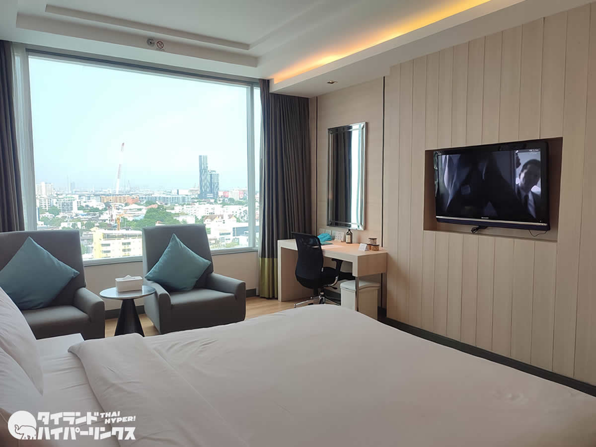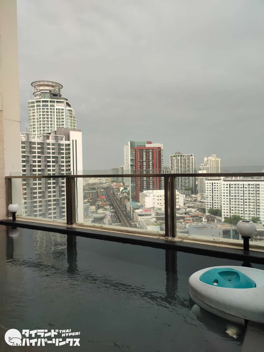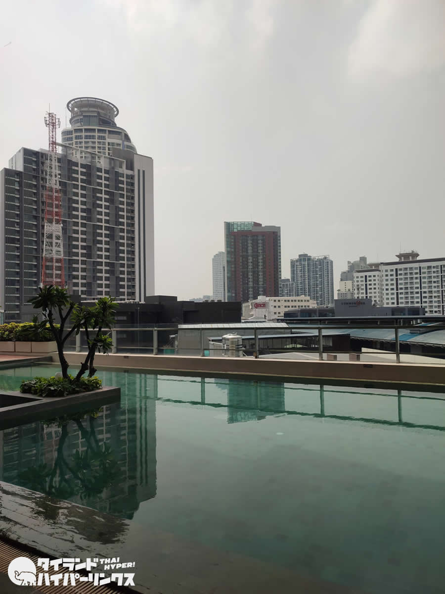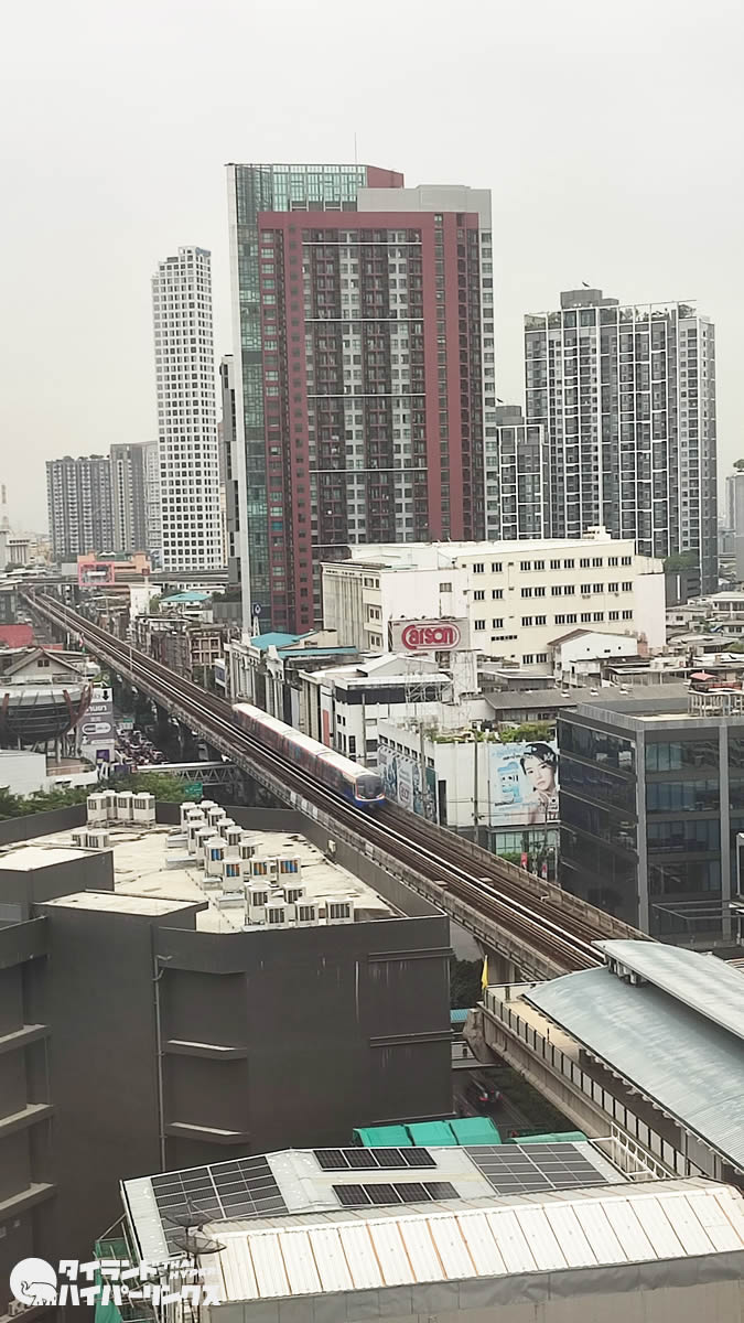 下の写真は、実際に宿泊した部屋からの眺め。BTSの線路はすぐ側です。あいにくの曇り空だったのが残念ですが、青空が広がればキレイでしょうね!