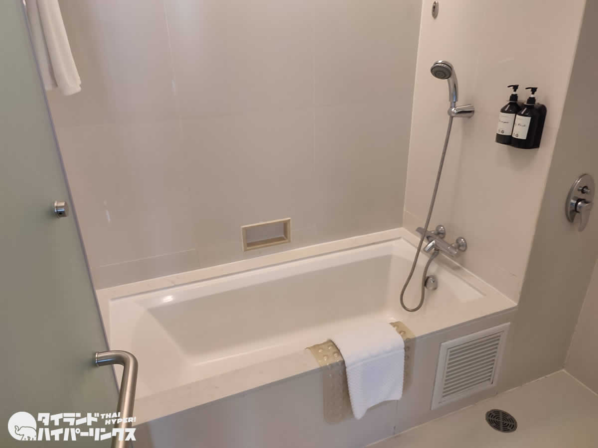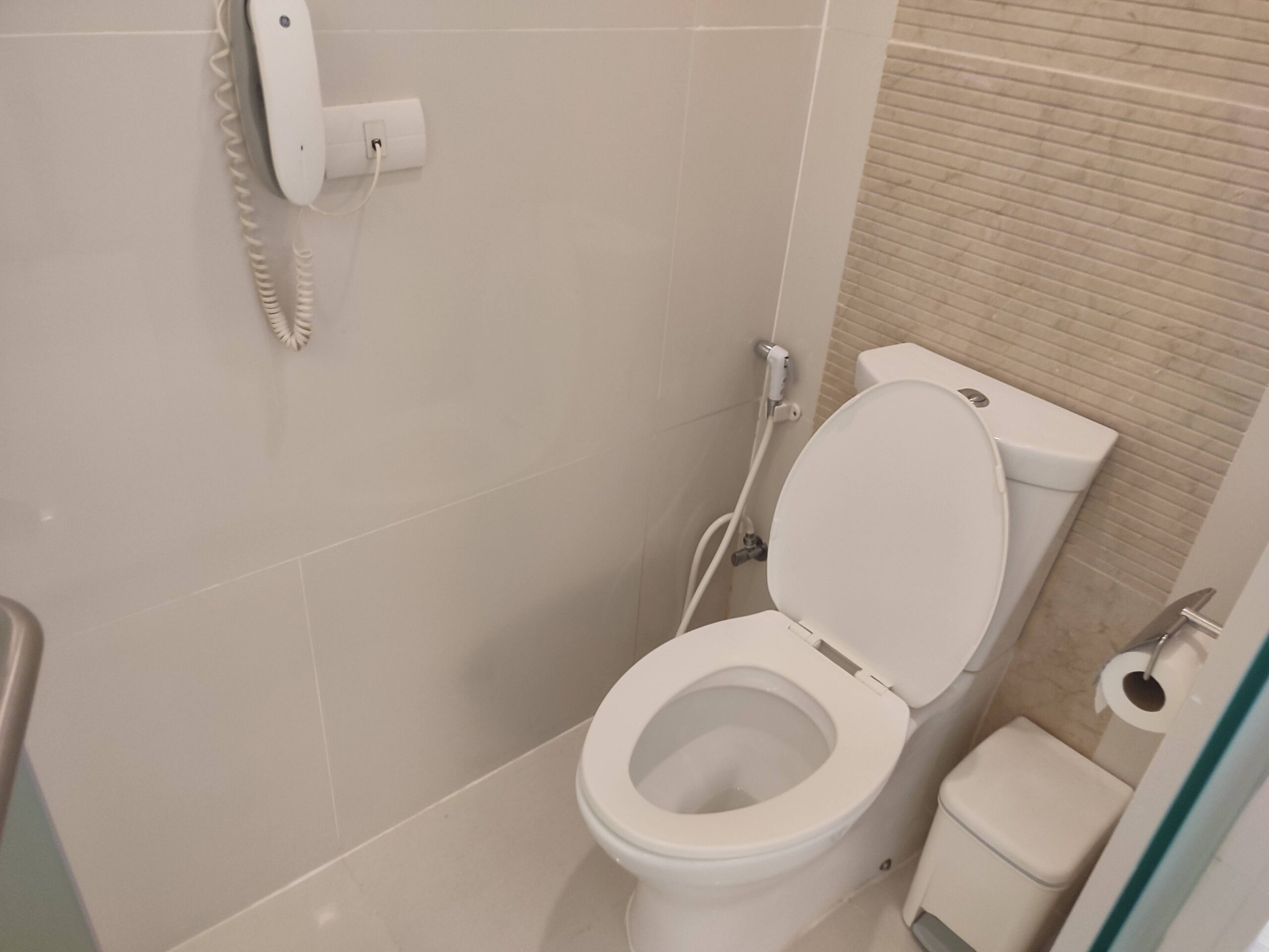 トイレはタイでお馴染みのお尻シャワー付き。バスタブもあって、サービスアパートメントとして利用している長期滞在の方には特に嬉しいですね。