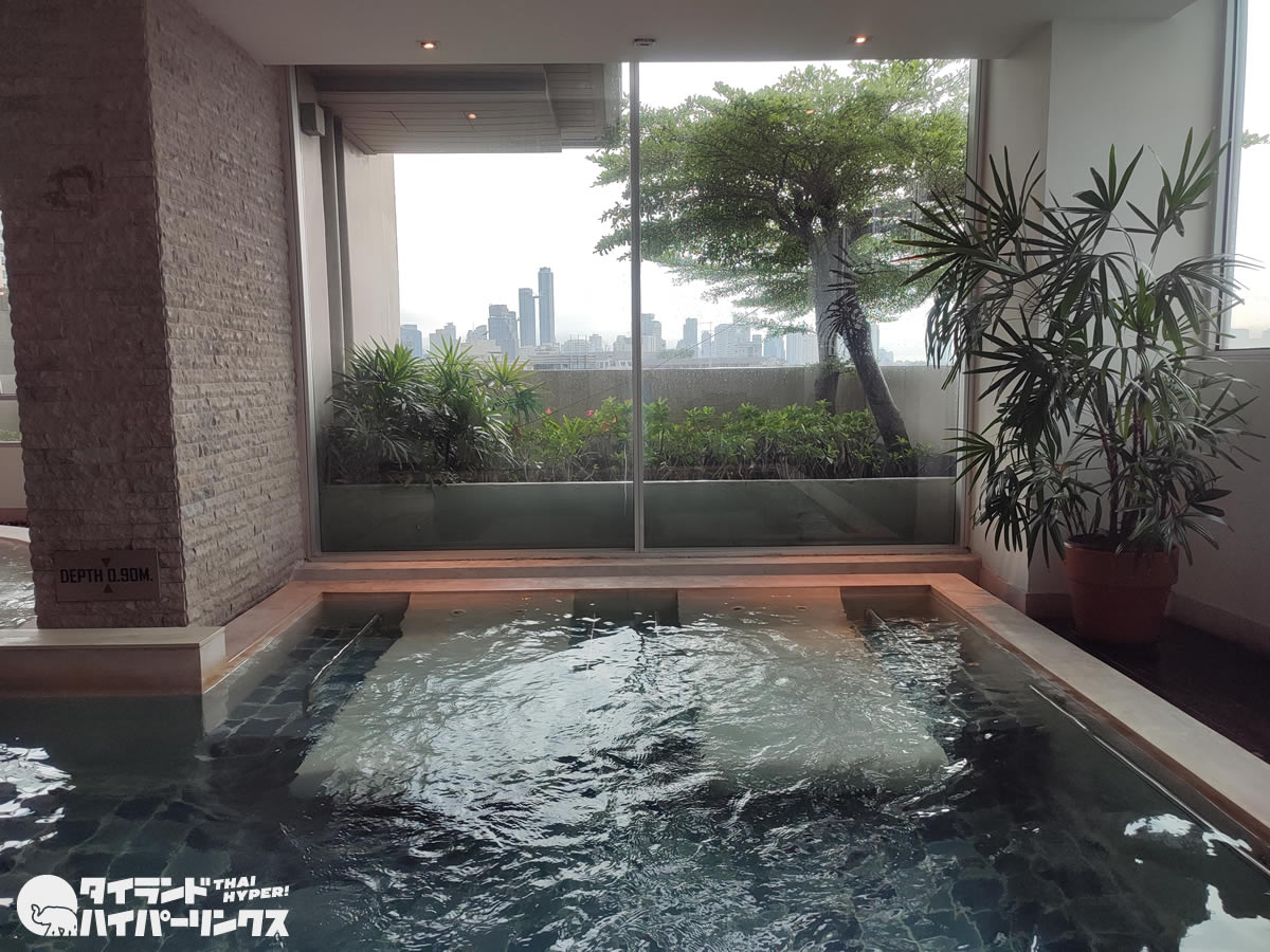 小さな囲いの部分はお湯の温度が高く、まさに温泉気分。客室の湯船も嬉しいですが、ここに通ってしまいそうですね。