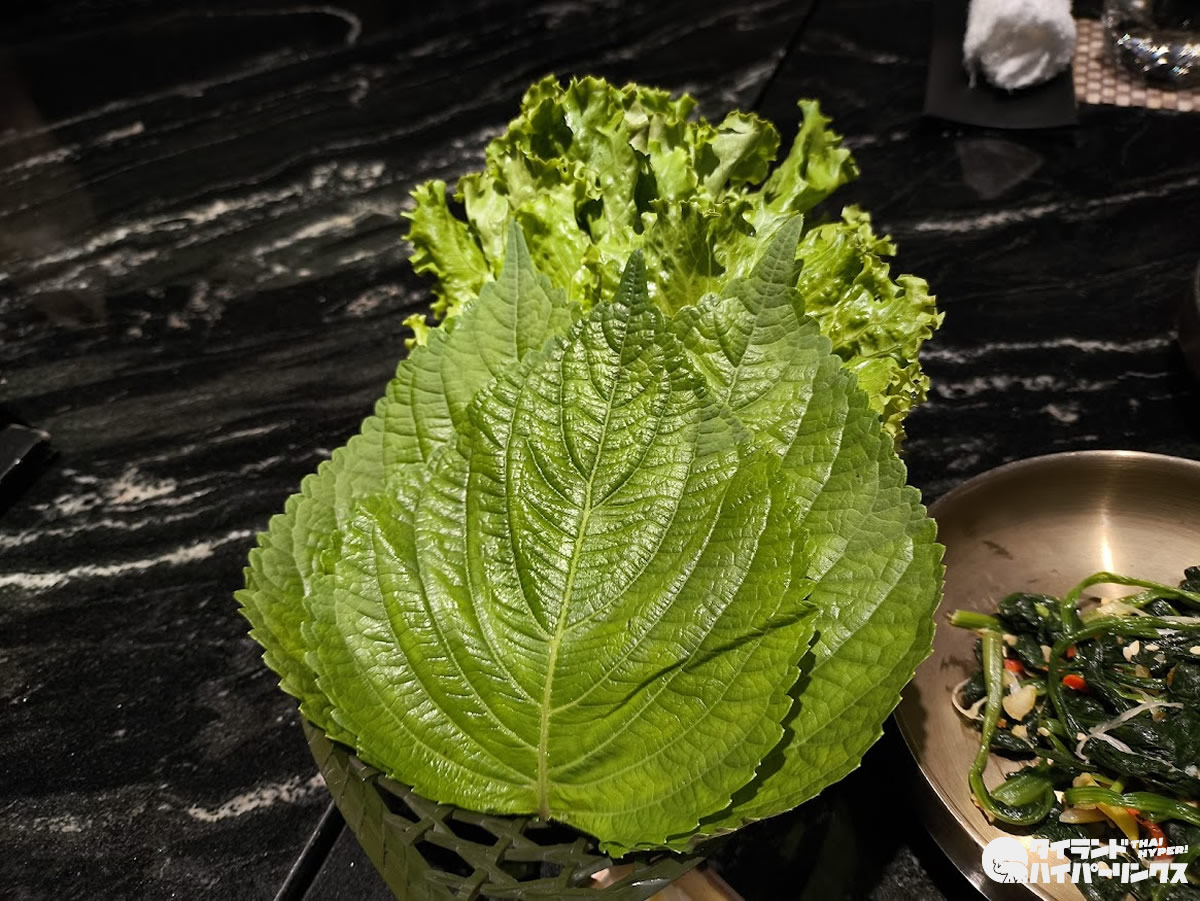 お肉を巻くレタスとエゴマの葉(ケンニップ)。
