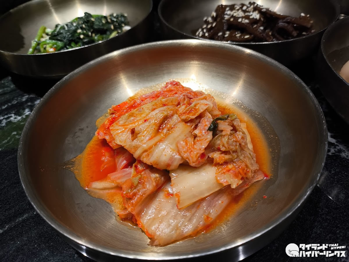白菜のキムチは本場韓国の味そのままと思えるほどで、酸味はわずかでまさに食べごろ。