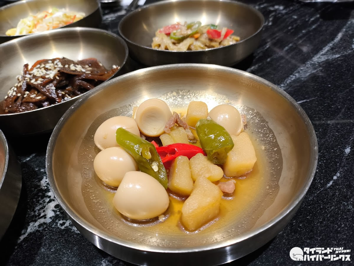 じゃがいもとウズラの卵の煮物やもやしのナムルなど、これらはすべて食べ放題です。