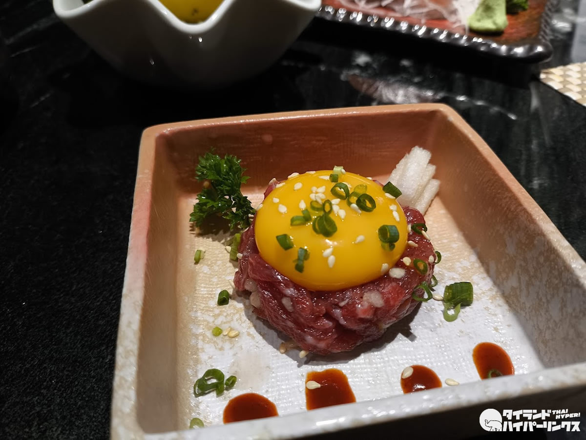 ユッケ・オリジナル。 ユッケ・アボガドとポークリブとで選択ができます。