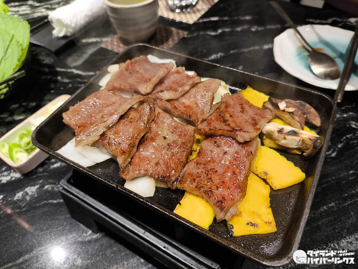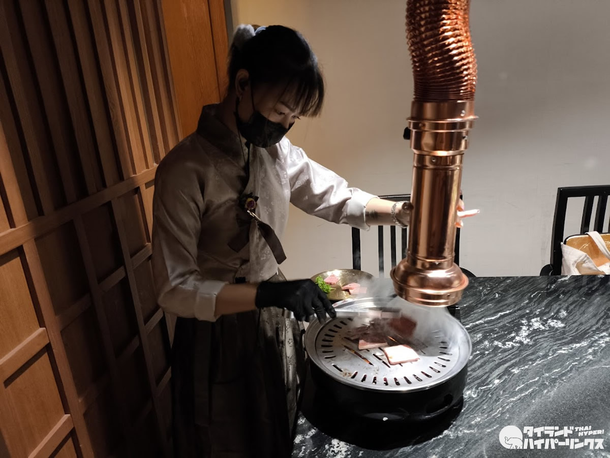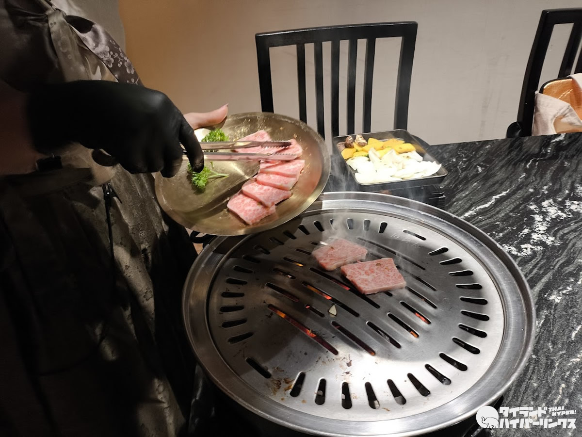 アラカルトでオーダーした890バーツのWagyuカルビは、スタッフさんがその場で焼いてくれる韓国スタイル。キッチンで焼いてきてもらうこともできるそうです。