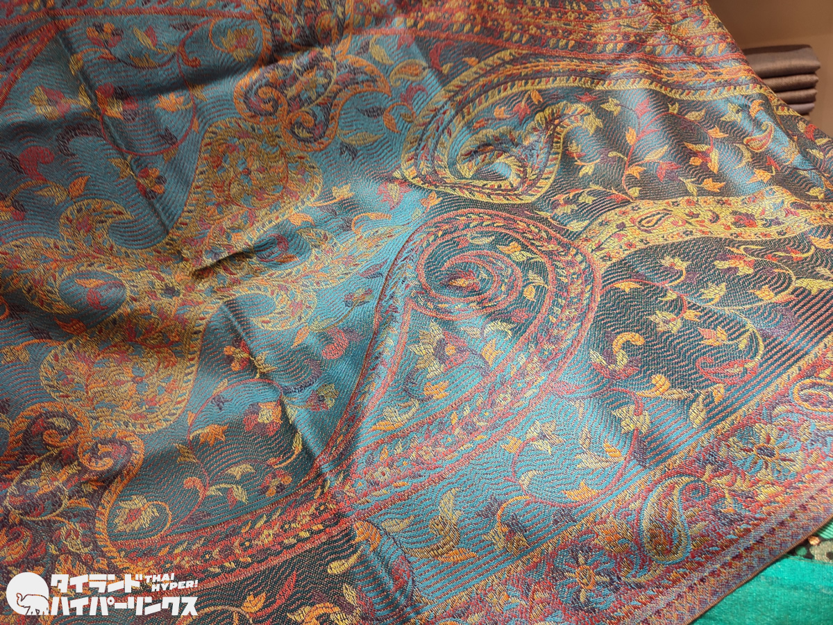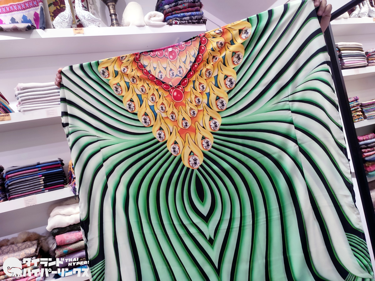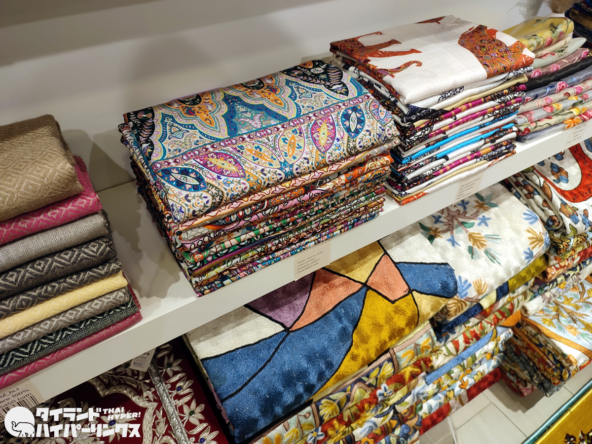 価格は大きさによっても変わってきましが、棚に並んでいるもので5000バーツ(約1万8000円)前後。カシミアの価値を知っている方なら、むしろ安価と思われるのでしょうね。なお、店の奥には、更に高価な商品もストックされているのだとか。