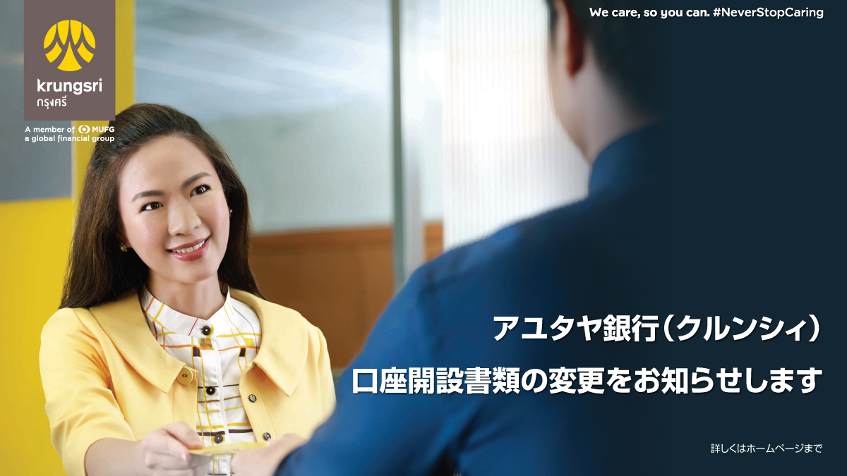 アユタヤ銀行(クルンシィ)からの重要なお知らせです。
