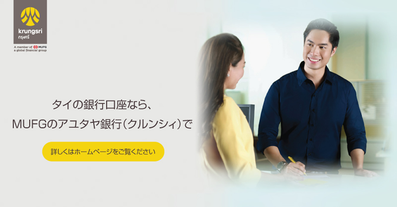 アユタヤ銀行(Bank of Ayudhya PCL)は、三菱UFJフィナンシャルグループの一員です。MUFGのグローバルネットワークと、1945年の設立以来、タイ国内で質の高いサービスを提供してきた地場銀行の側面の両方に強みを持つ銀行です。