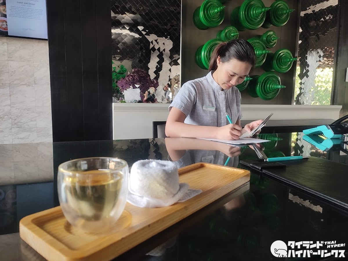 メーファールアン・チェンライ国際空港からル メリディアン チェンライまでは、車で20分ほど。お願いしていた送迎車でホテルに到着し、冷たいおしぼりとウエルカムドリンクでチェックイン。早速客室へ向かいました。
