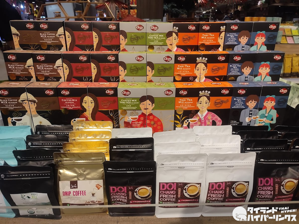 ここでなら大抵のチェンライ土産が揃うので、他で買えなかったときも安心。チェンライ名産のコーヒーやお茶も並んでいます。
