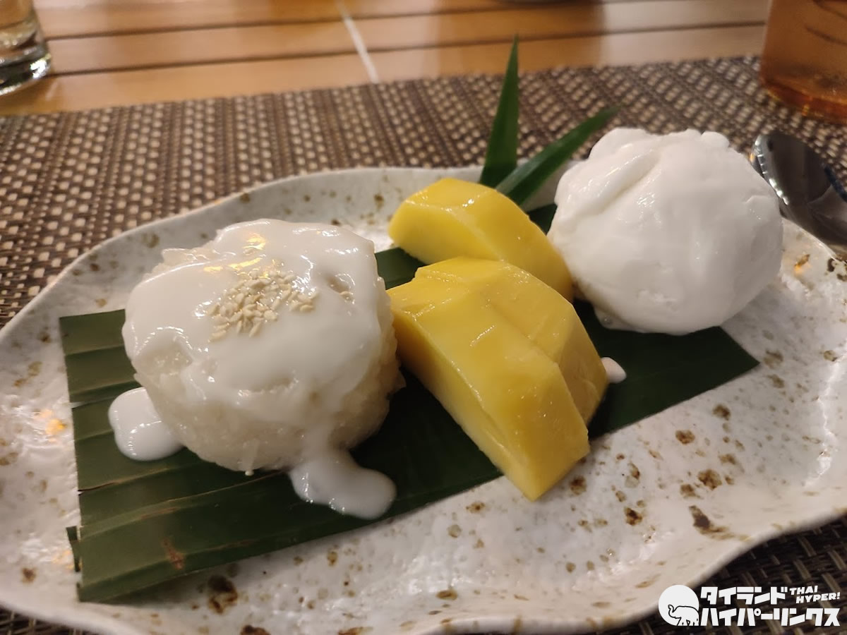 食後はもち米とマンゴーのスイーツ「カオニャオマムアン」で締めくくりです。