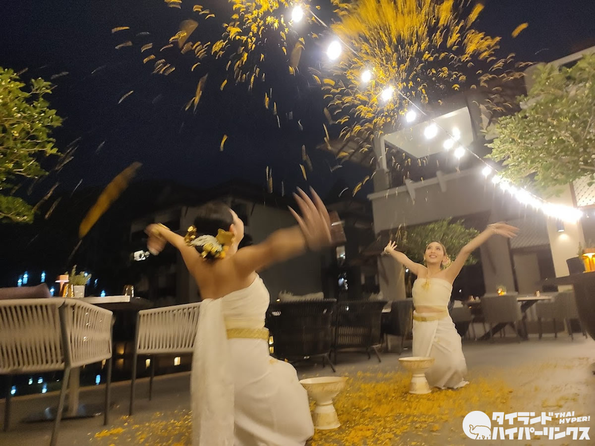 沢山の花びらが舞う中、北タイダンスのショーが披露されました。