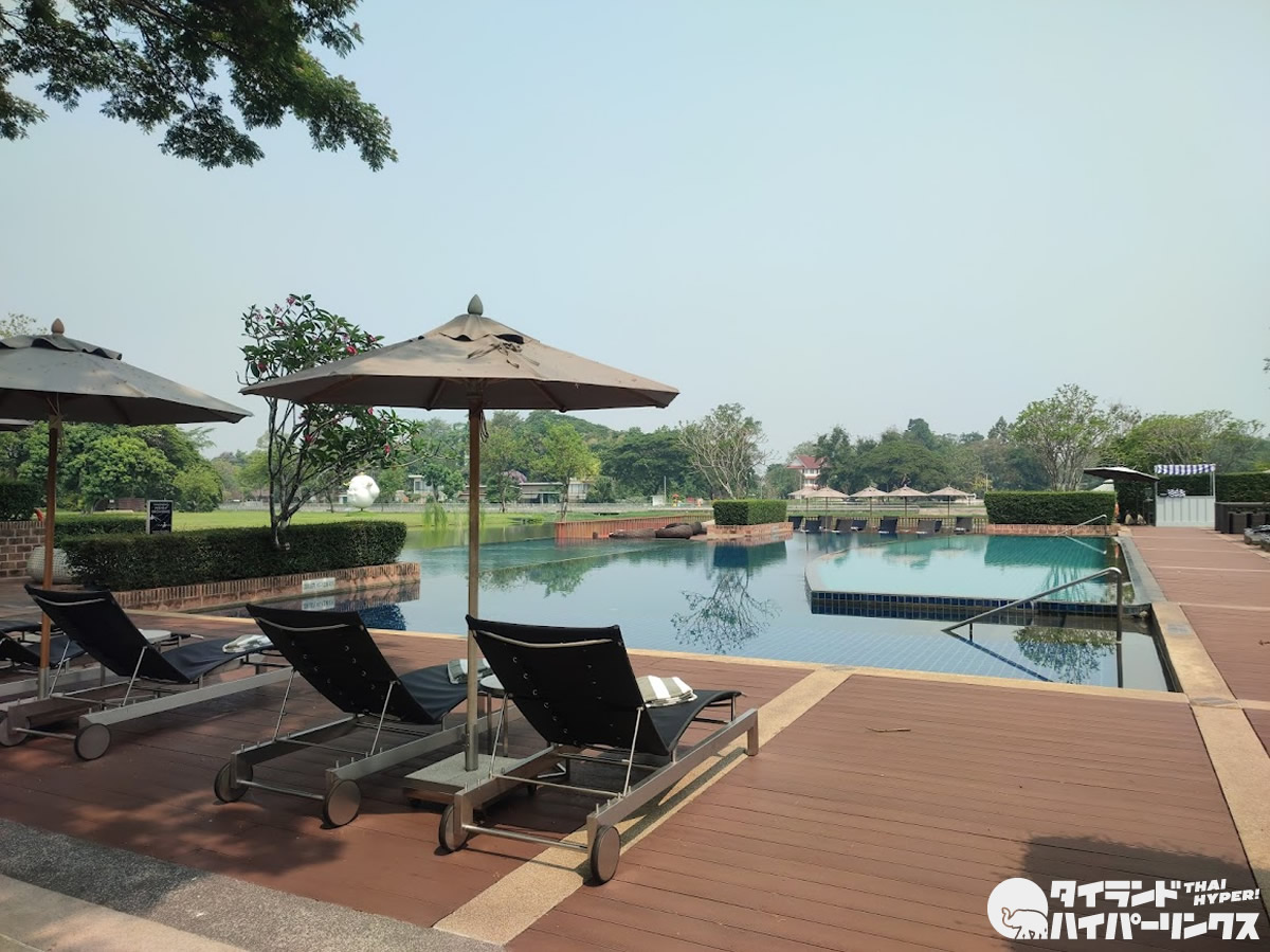 コック川か眺められるプールの先にあるのが、ル メリディアン チェンライ リゾートのスパ。