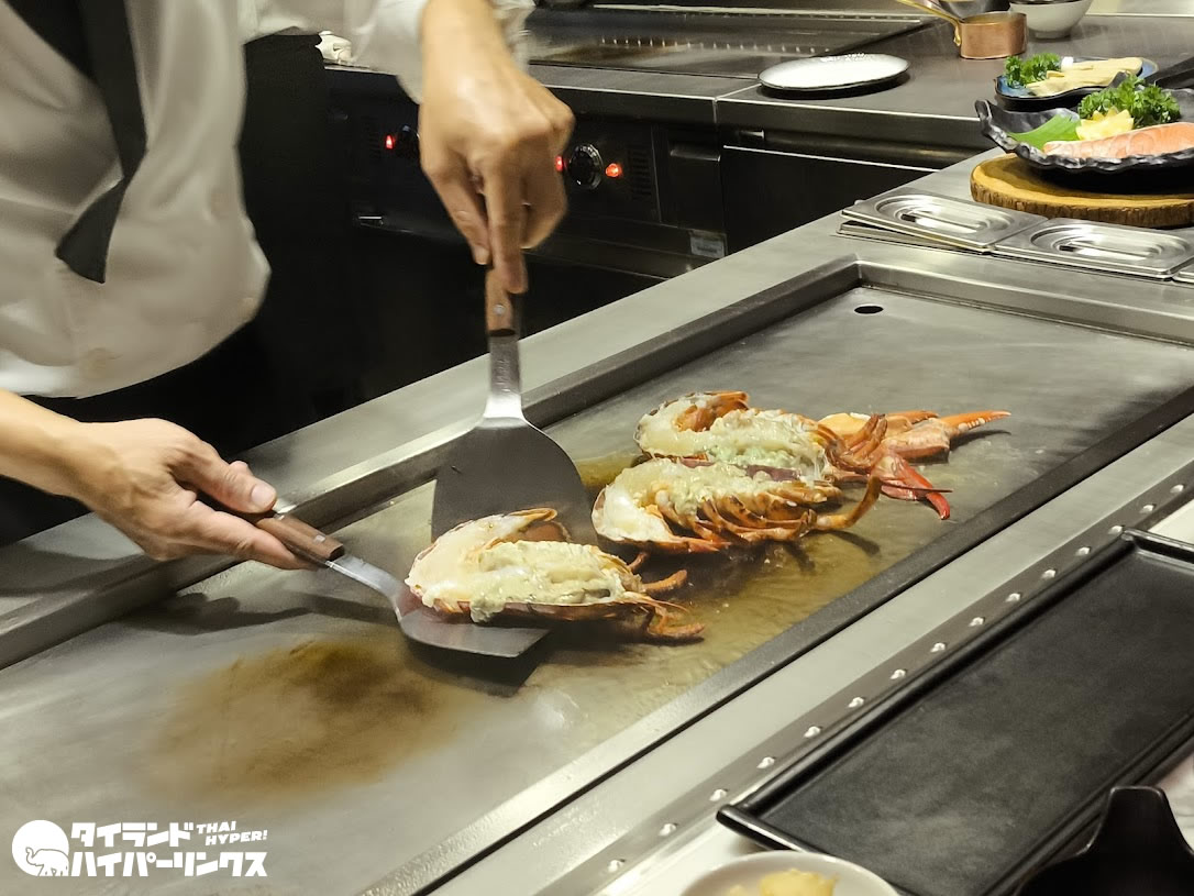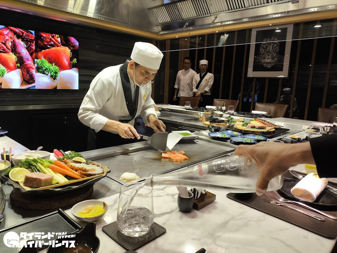 日本各地から厳選されたA5和牛、ライブロブスター、北海道産ホタテ、キングクラブなど、素材そのものの個性を活かすことを重視。鉄板の上では、日本料理の技術をベースに、繊細で洗練された調理が行われます。