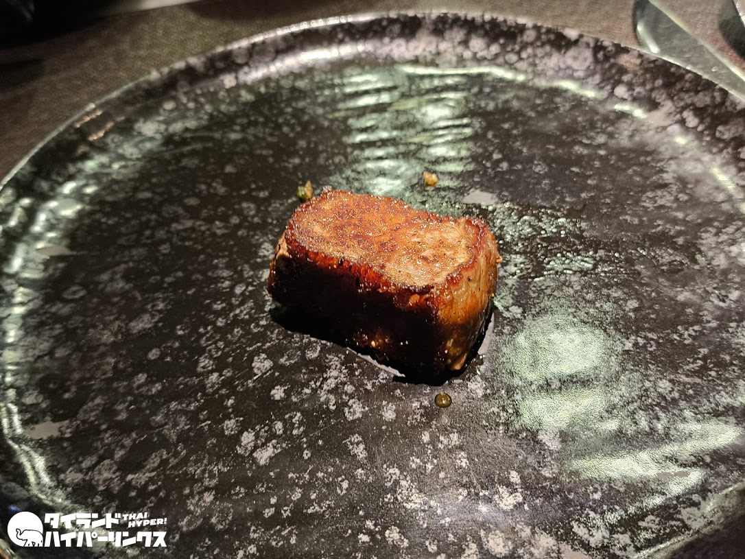 6面がしっかりと焼かれていることで、外側はサクッと香ばしく、中は驚くほどジューシー。口に入れた瞬間、香ばしさと肉の旨味、そして上質な脂の甘みが広がり、シンプルな調理だからこそ素材の良さが際立つ仕上がりでした――という、いかにもな表現が思わず飛び出してしまうほどの美味しさです!