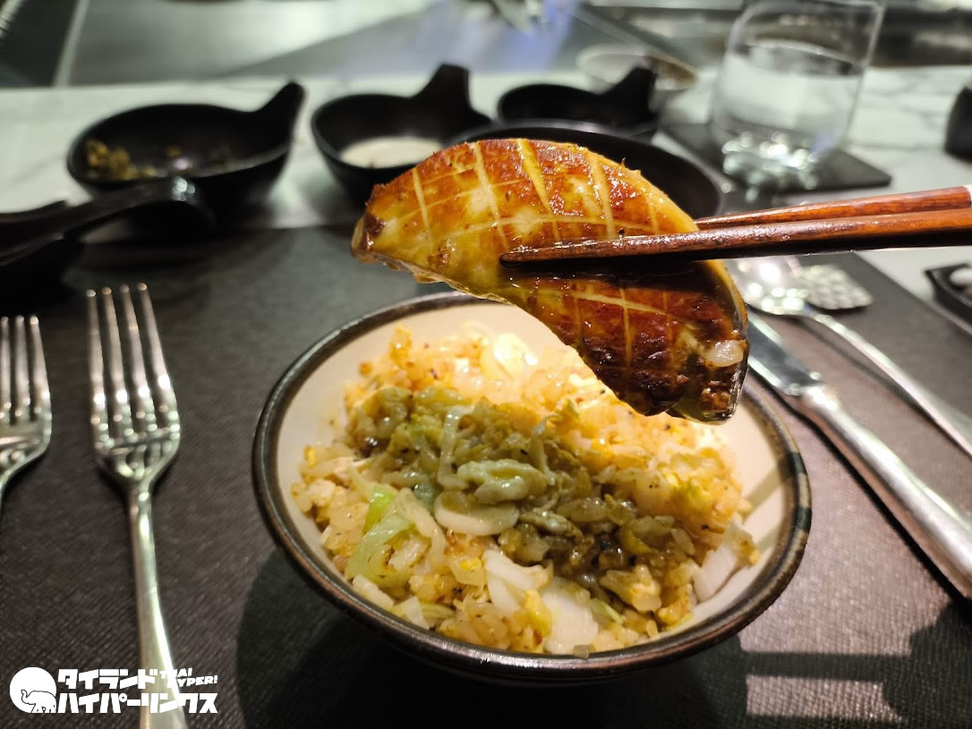 最後はガーリックチャーハン。そこにフォアグラが添えられます。
