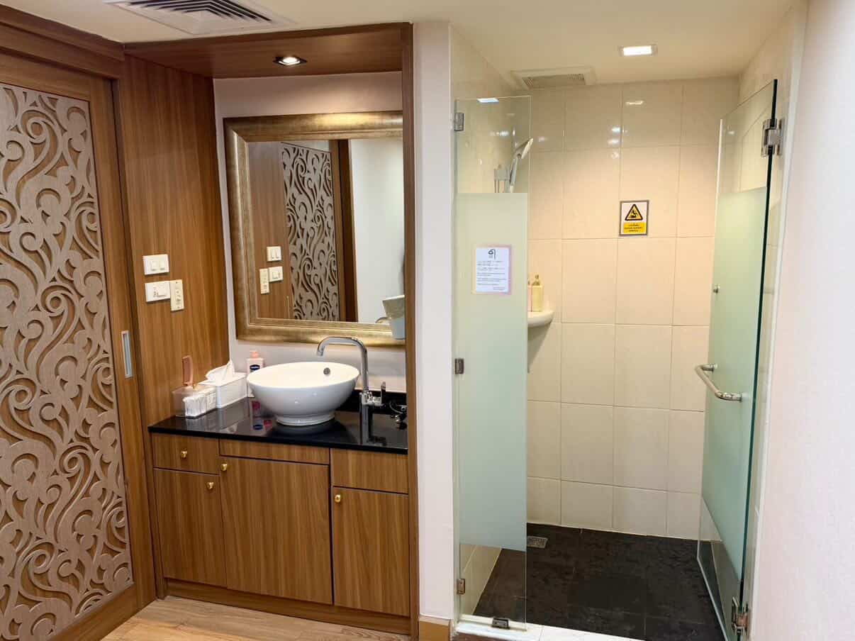 シャワールーム完備&スーツケースも預かり可能。