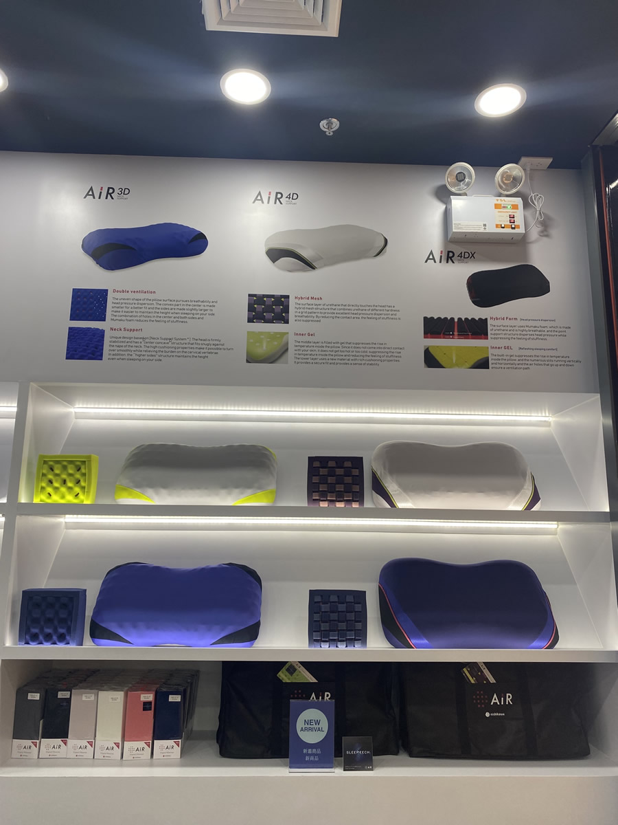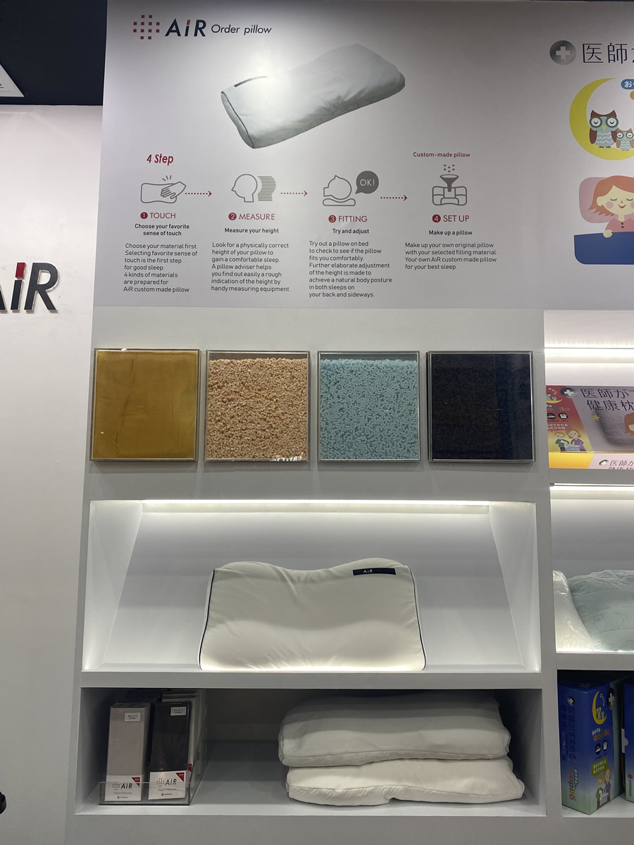 では自宅で高さ調整が可能なエアーの枕を複数展開。