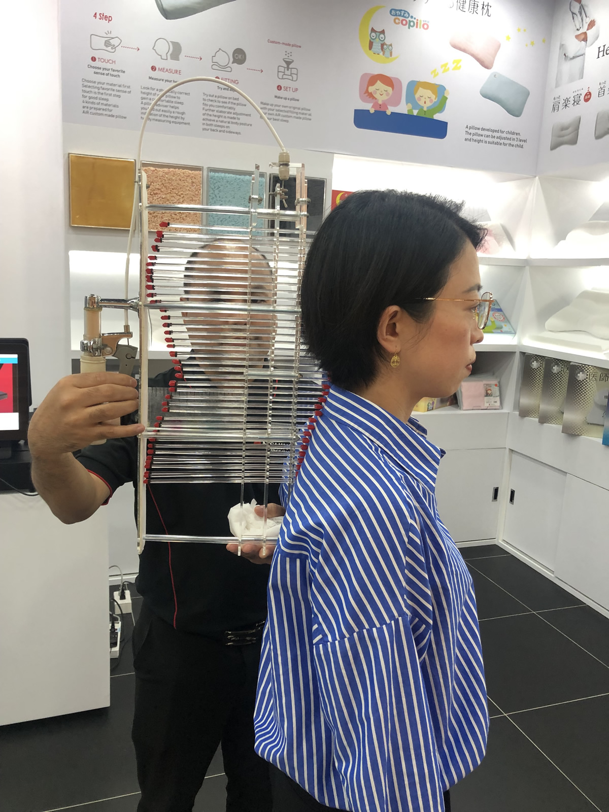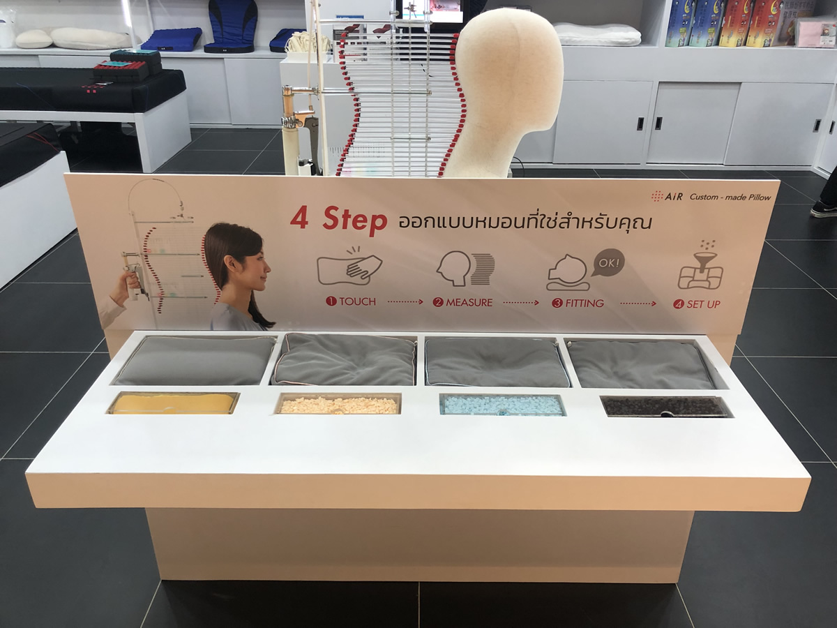 オーダーメイド枕は、枕の中身も柔らかい物から固めの物までお客様の好みに合わせて選べます。マットレスの固さが店舗とご自宅で異なると、自宅で試した際、店舗で試した時よりも低く(あるいは高く)感じるという事もあるかと思います。購入後1年間は無料で高さの調整が何度でも可能な事もこの枕の特徴です。