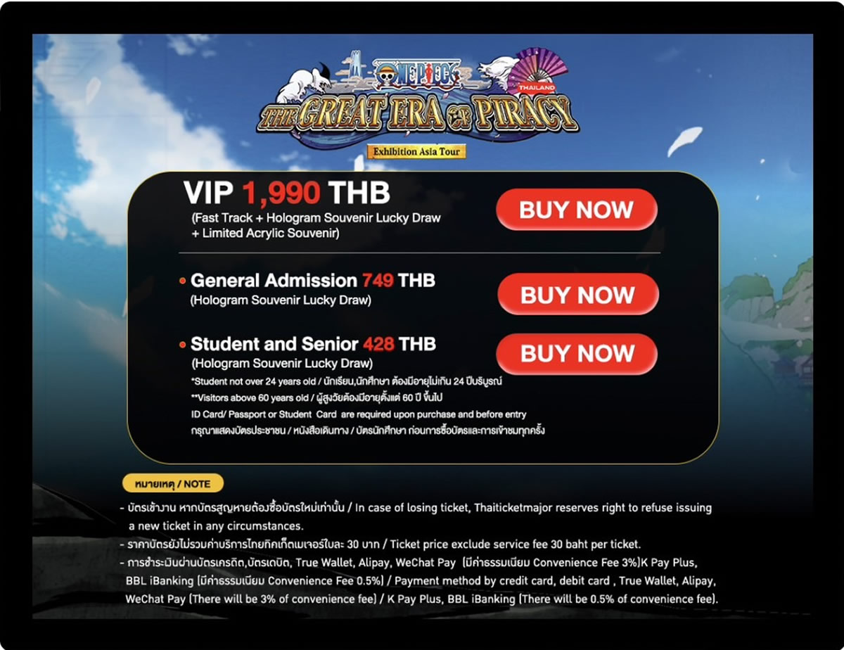 「ワンピース“大海賊時代”展」がタイに上陸!香港、マレーシア、インドネシアで大好評を博した展示会が、バンコク中心部のランドマークであるセントラルワールドで開催です!