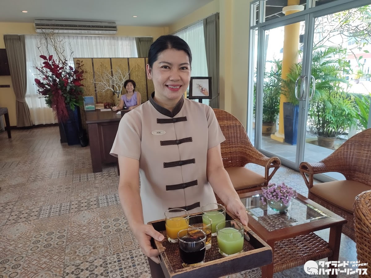 冷たいお絞りで汗を拭き、冷たいドリンクで喉を潤し、落ち着いたところでスパのコースを選択します。