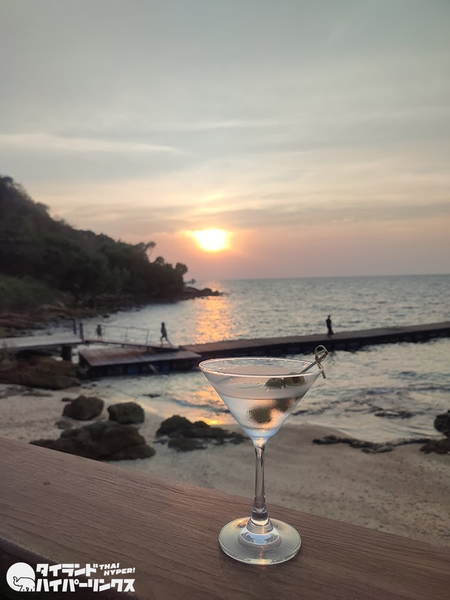 サンセットポイントはホテル西側のパラディー専用船着き場がある場所です。ここには「SUNSET BAR」というバーがあるので、カクテルを飲みながら太陽が沈むのを待ちましょう。ウェルカムカクテルが1杯無料(滞在を通して1回のみ)になっているので、ぜひ足を運んで欲しいです。
