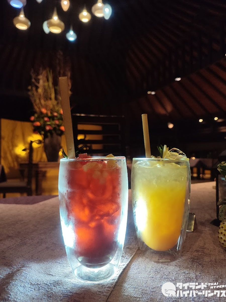ここではタイ料理から西洋料理まで揃っていて、カクテルも種類が豊富。