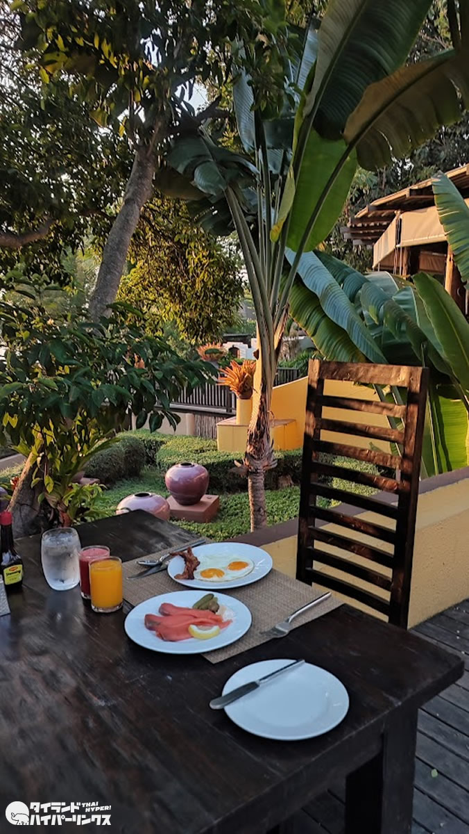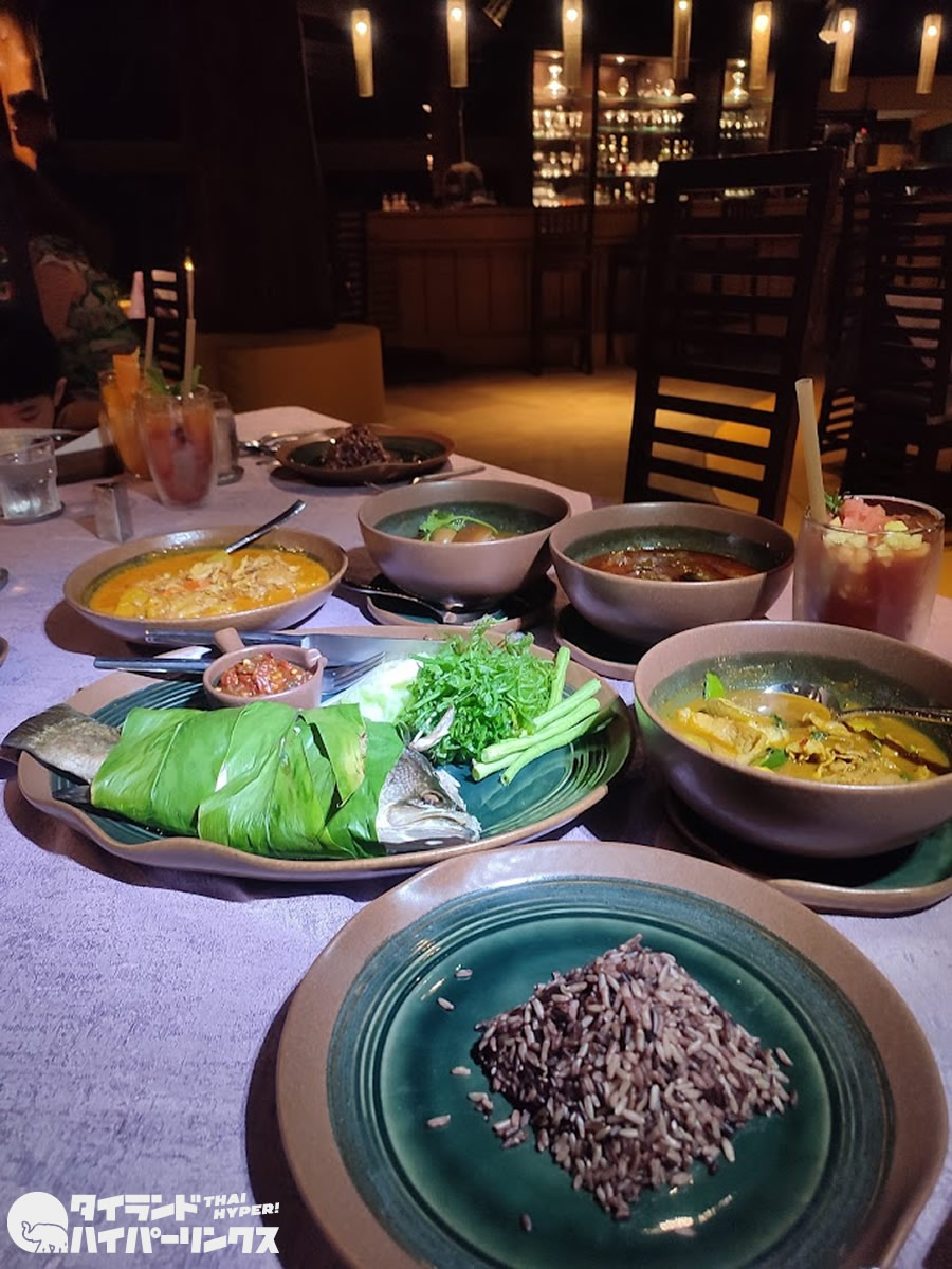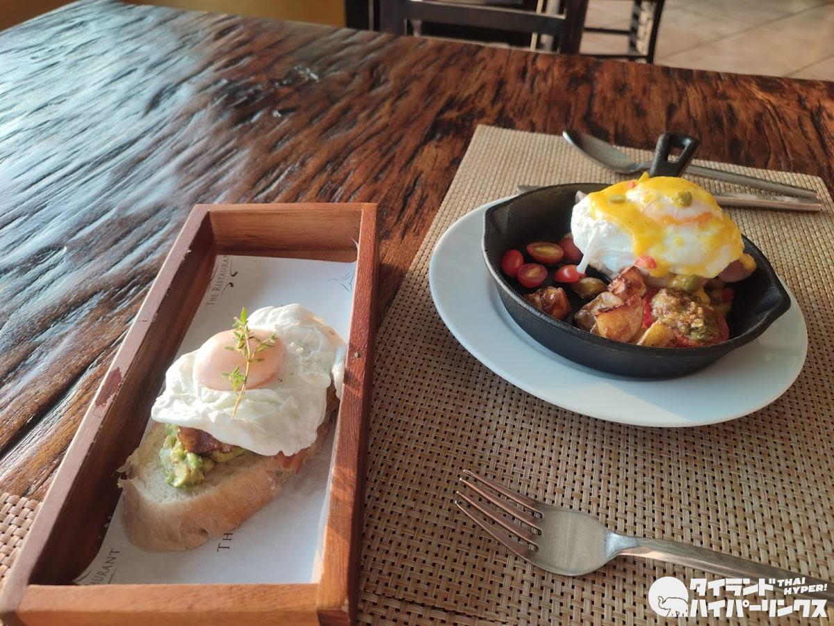 屋根付きの東屋もあり、今から思えばここに料理を運んで貰えばよかったです。ホテル内唯一のレストラン「The Restrant」では、タイ料理から西洋料理までメニューが充実。美味しいカクテルも揃っているので、パラディーに宿泊すれば朝食を含めて何度も利用する機会があるはずです。