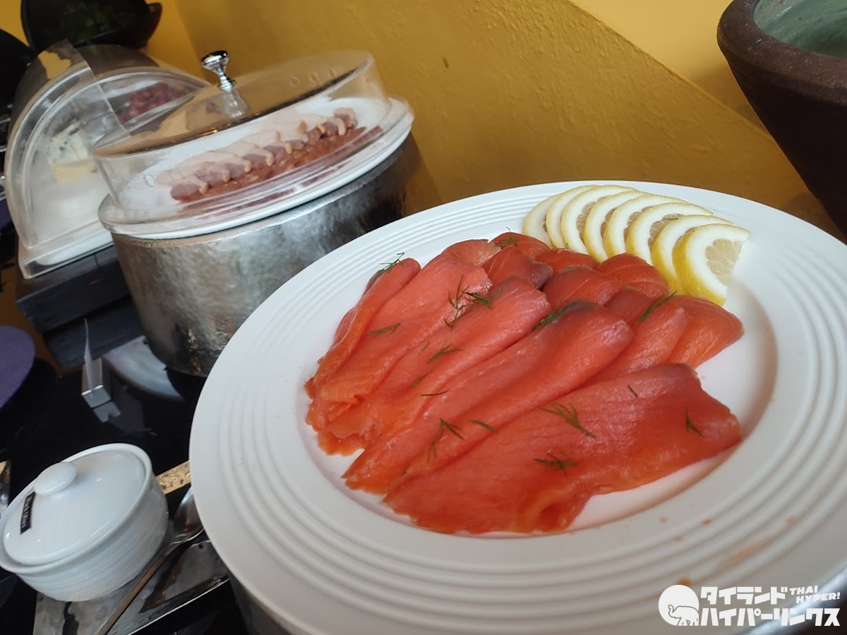 それなりのクラスのホテルの朝食のビュッフェならスモークサーモンを置いているホテルは多いですが、ここのは特に分厚い(笑)。いままで食べたスモークサーモンの中で一番分厚いかも(笑)。食べごたえ十分です!