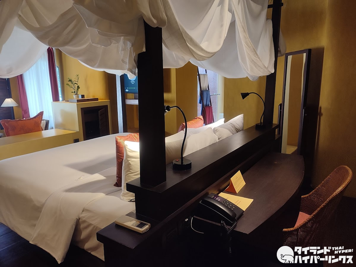 ベッドの後ろにはデスクがあり、リゾートでもお仕事をしなければならないという方も安心。