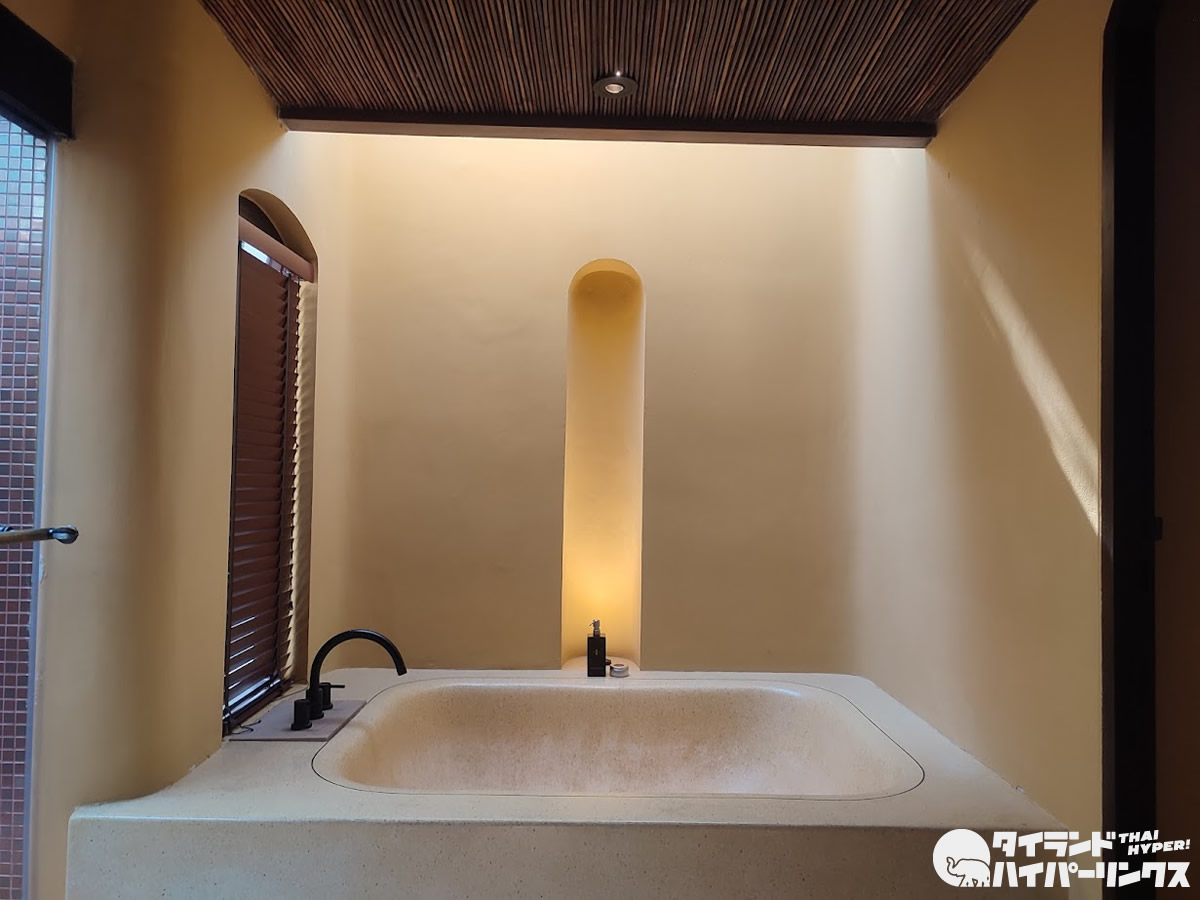 洗面台。チェックイン時に選んだ石鹸は、ここに置かれることになります。