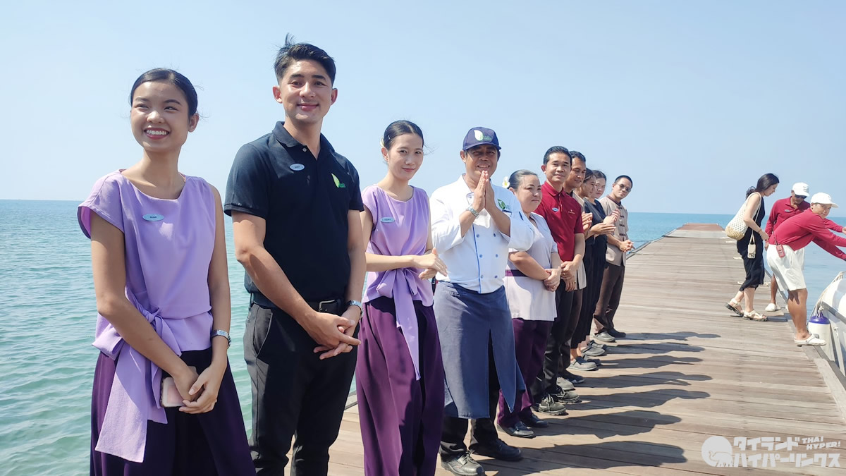 スピードボートでパラディー専用の船着き場に到着すると、そこではスタッフのみなさんが一列に並んで出迎えてくれていました!特別感がすごい!