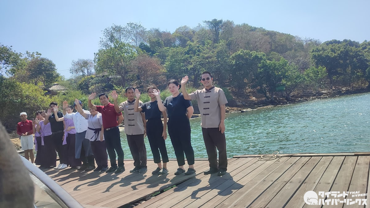 スピードボートに乗り込んで、本土へ向かって出発。スタッフさんたちは、いつまでもいつまでも手を振り続けてくれたのでした。