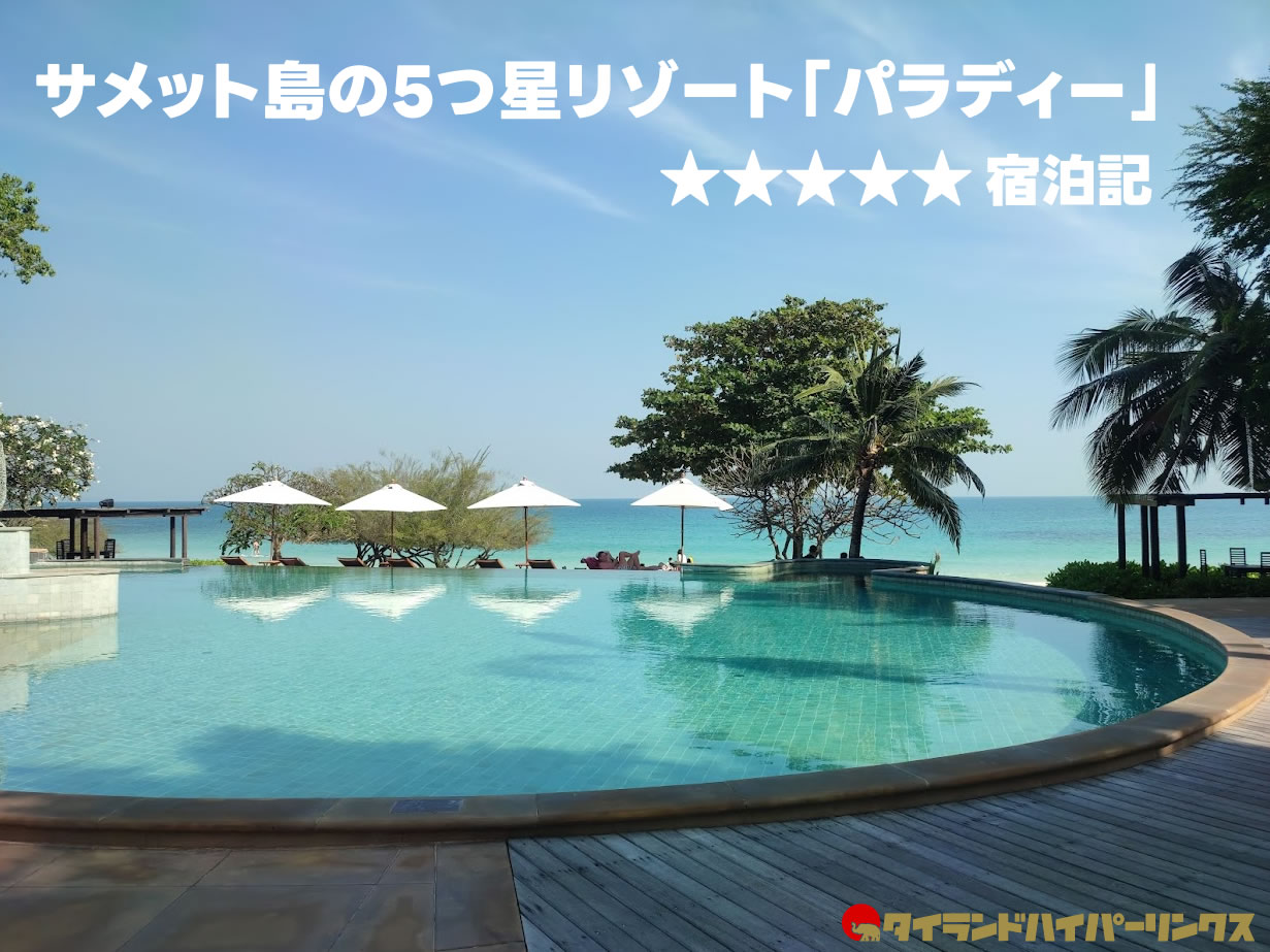 サメット島でいくつものホテルを有するサメットリゾートグループの中で、最も格式高いのが5つ星のパラディー(Paradee)。サンライズもサンセットもホテルの敷地内から見ることができるという立地で、ビーチはプライベートビーチ状態。海を眺めながらゆっくりと休暇を過ごしたい大人たちから強い支持を受けているのがパラディーです。