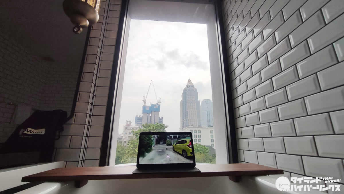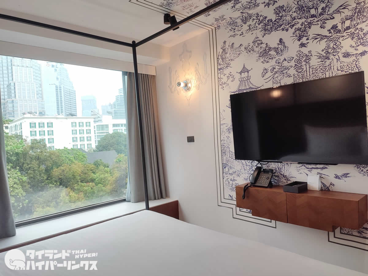 歓楽街まで歩いてすぐでも「PASSA Hotel Bangkok」があるのはショッピングモールの裏手で、とても静か。大きなベッドと装飾と緑の見える景色とで、特別な時間を過ごせるはずです。