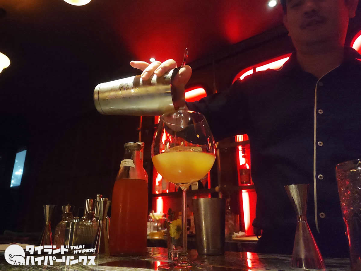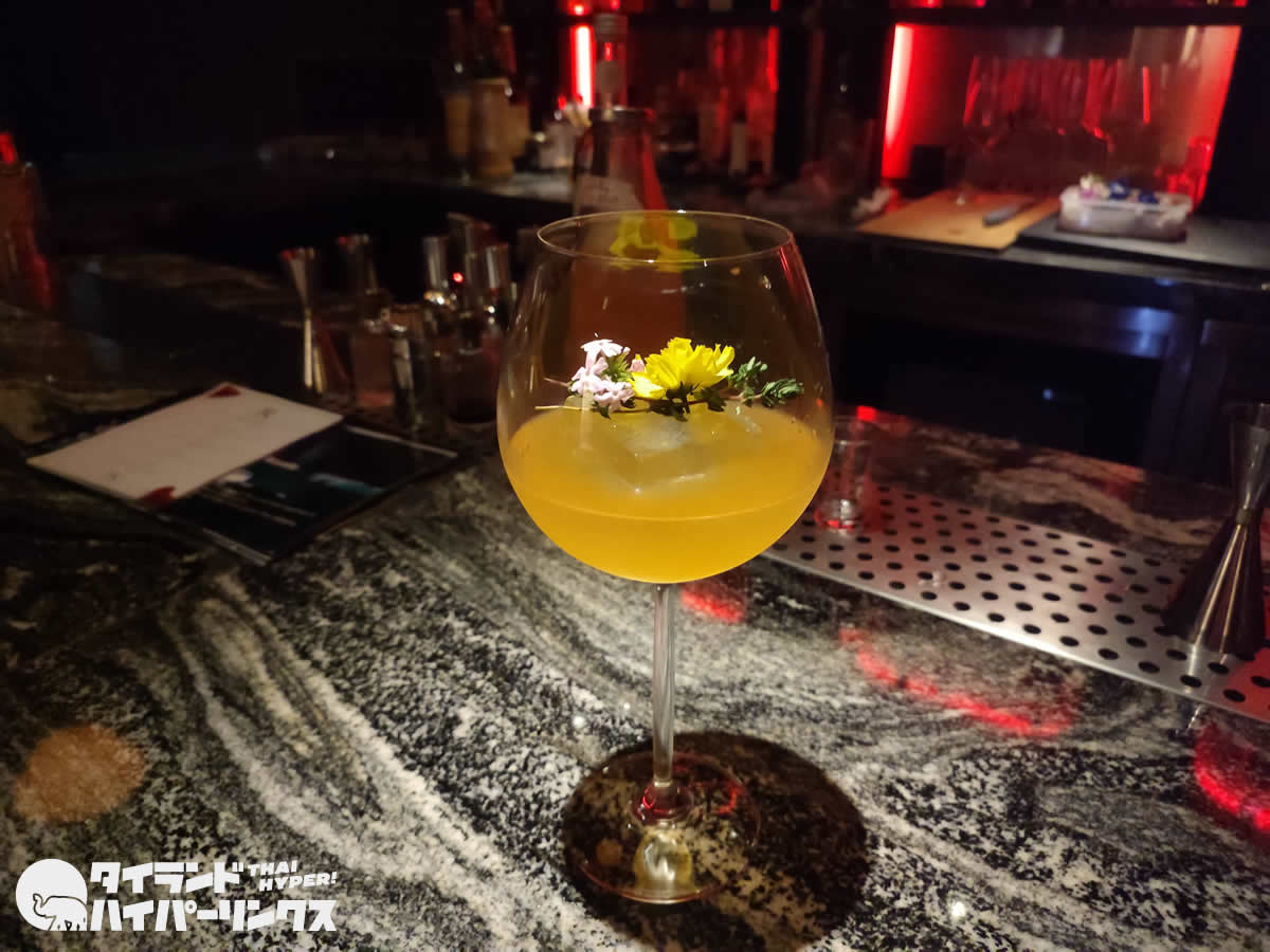 アルコールを飲まない私がオーダーしたのは、「Last call」と名付けられたモクテルでした。ホームメイドジンジャービアとほんのりとカオニャオマムアン(もち米とマンゴーのタイ伝統スイーツ)風味のモクテルで、タイを感じる一品。オススメです!