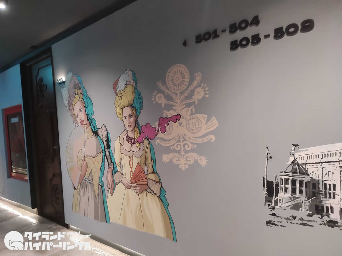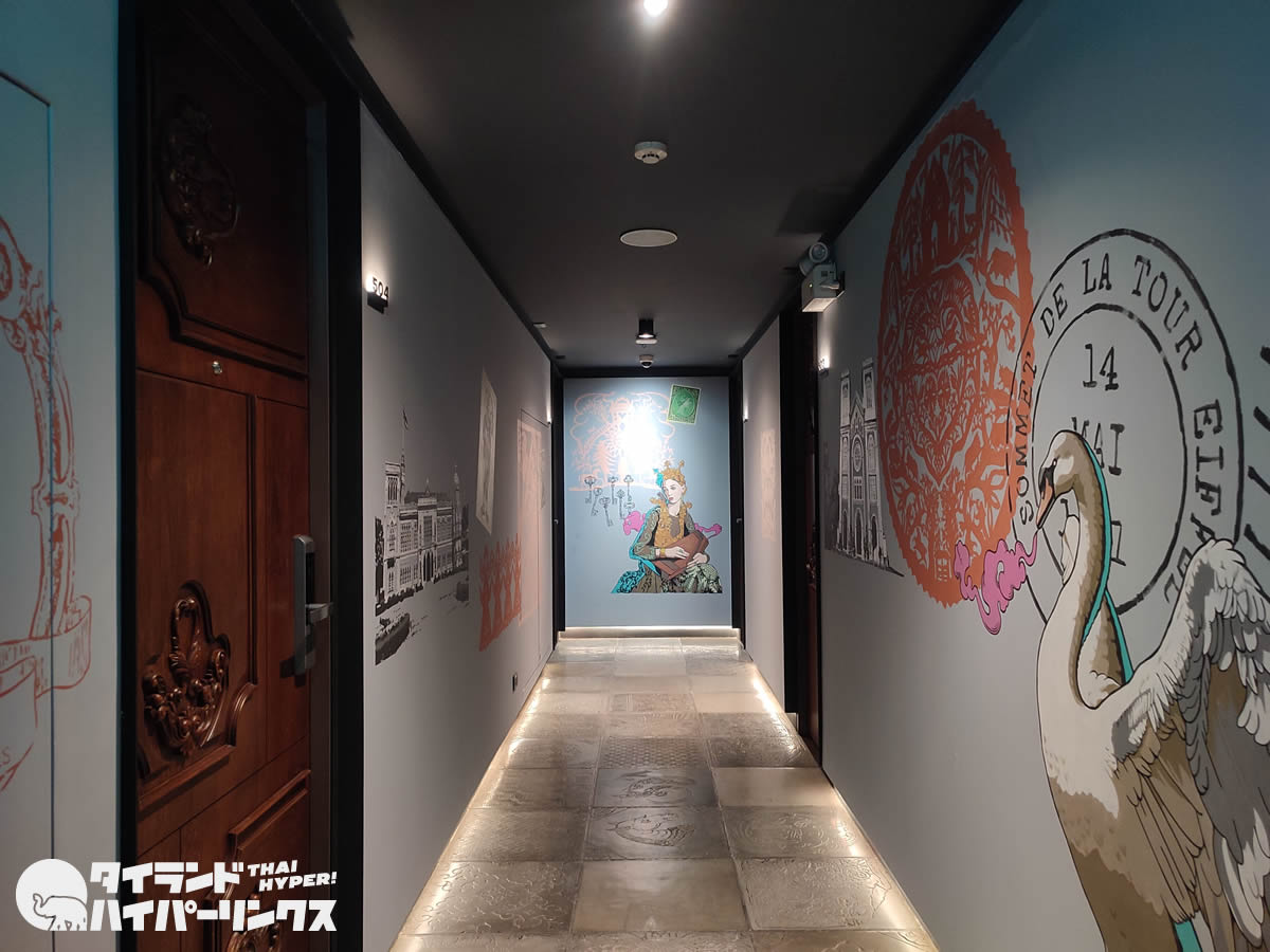 今回宿泊したのが、5階の501号室。客室までの通路には壁画が並んでいます