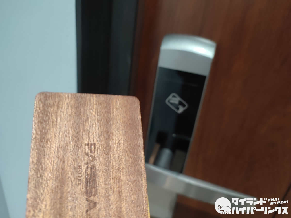 いよいよ今回宿泊する501号室へ。キーカードは木製です。