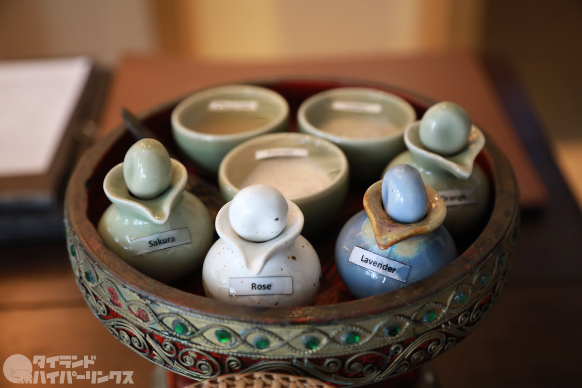 アロマオイルで選べる香りがこちら。特に“桜”は思わずオイルを舐めたくなうような美味しそうな香りでした(笑)
