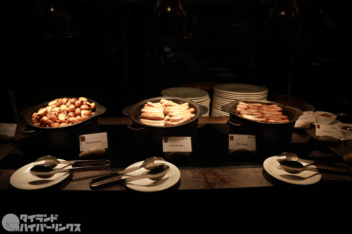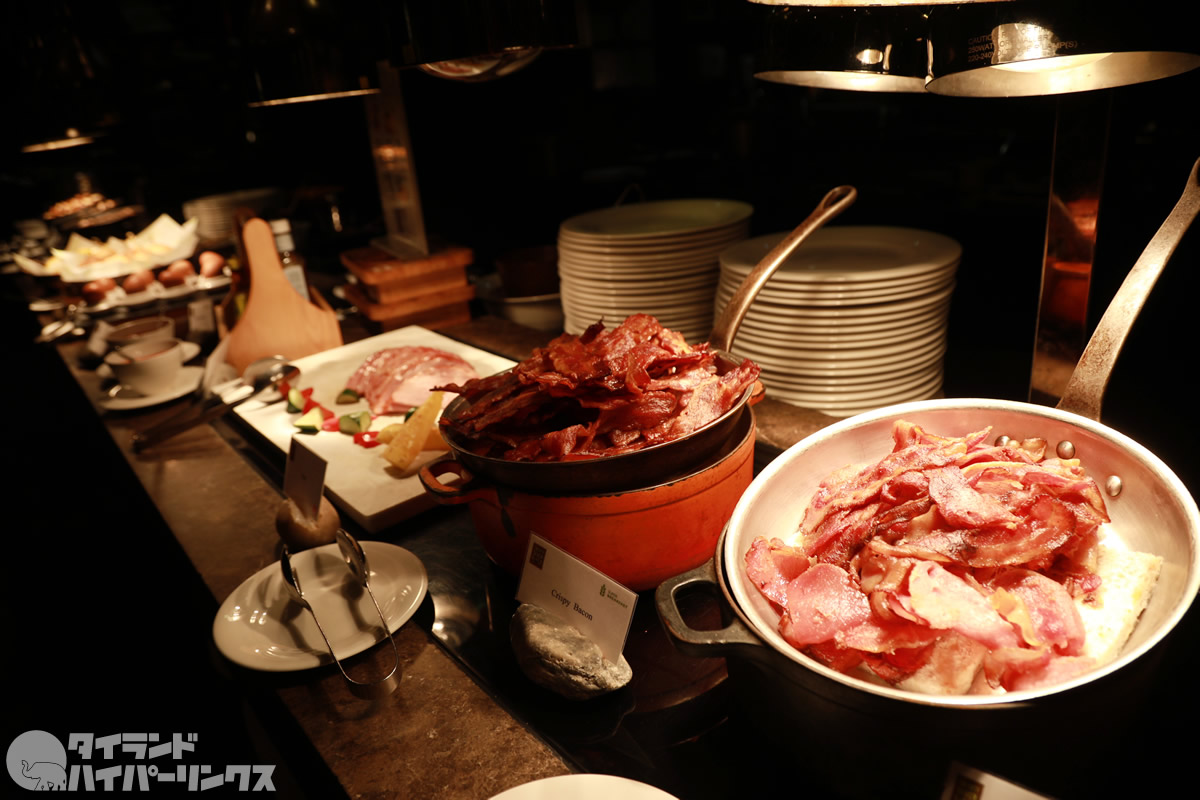 ソーセージはポークとチキンが。そして隣にはベーコンやハム、ハンバーガー等が並びます。
