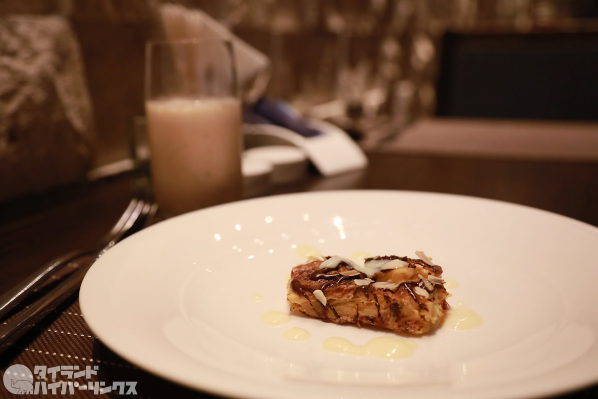 食後はクロワッサンのスイーツと ミックスフルーツスムージーにしました。