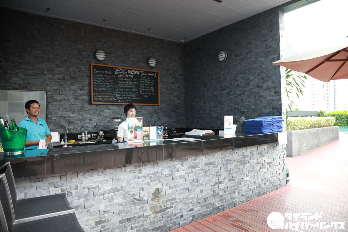 屋外に出るとプールです。プールサイドのバーでビールでもオーダーして、のんびりとした1日を過ごすのも悪くないですね。
