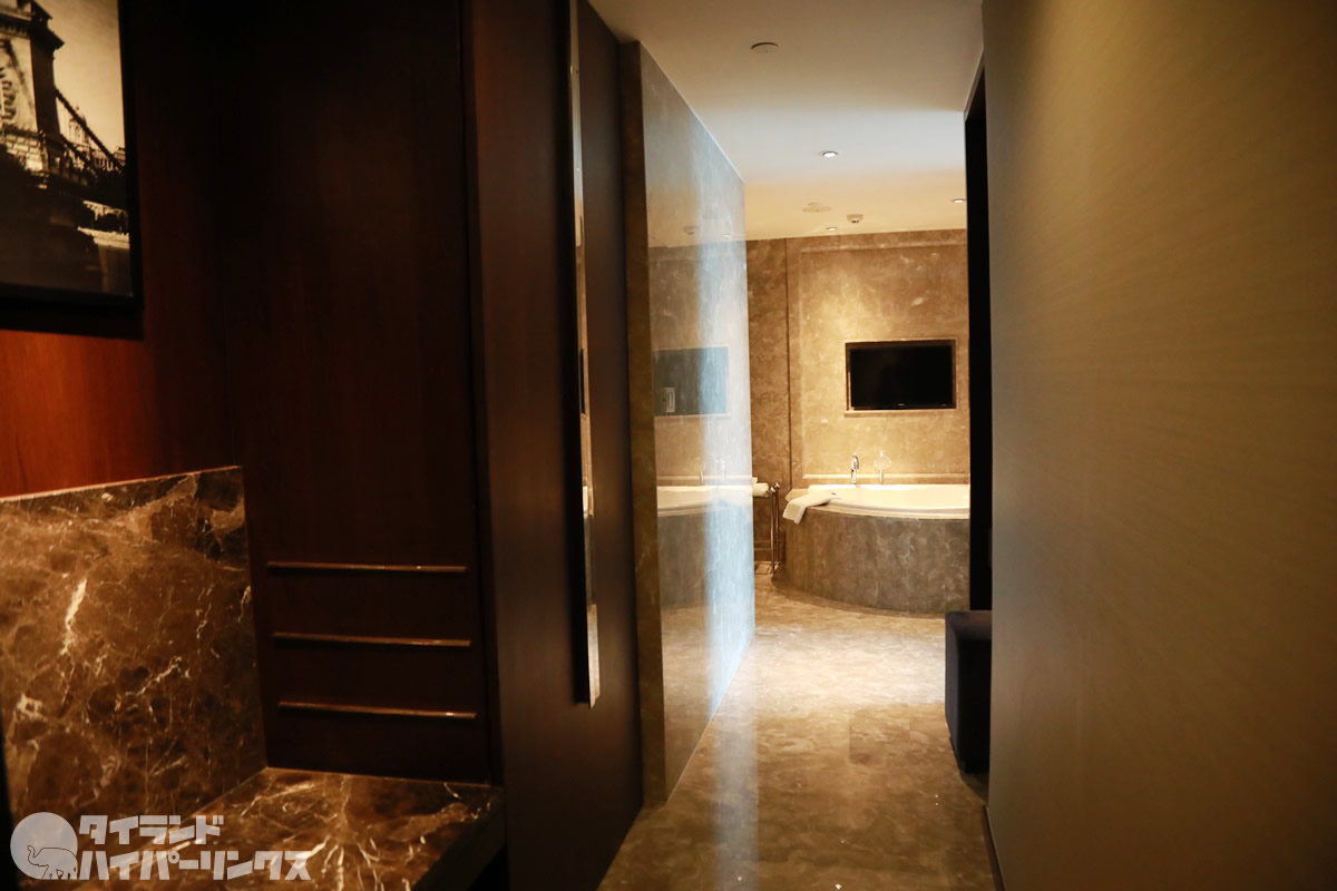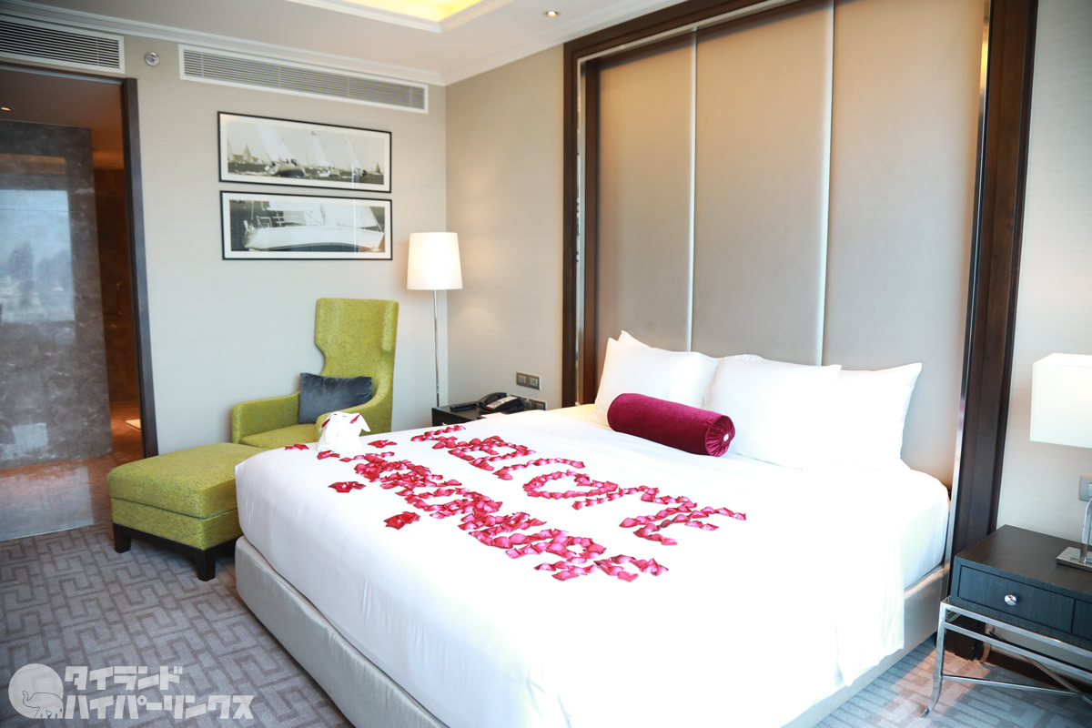 今回「Radisson Blu」で宿泊したのは、24階のOne Bedroom Suiteというカテゴリーの客室。ベッドルームとリビングルームが分かれていて、総面積72㎡にもなる広々としたお部屋です。通常の旅行で利用するのも最高のお部屋ですが、会社の上司とのバンコク出張で、役職に合わせて客室のランクに差をつけたい時には最高のお部屋です。(ビジネス客は、そういったリクエストが少なくないそうです)。時期にもよりますが、価格も1泊3万円以下からとなりますので、予算的も収まりそうですね。