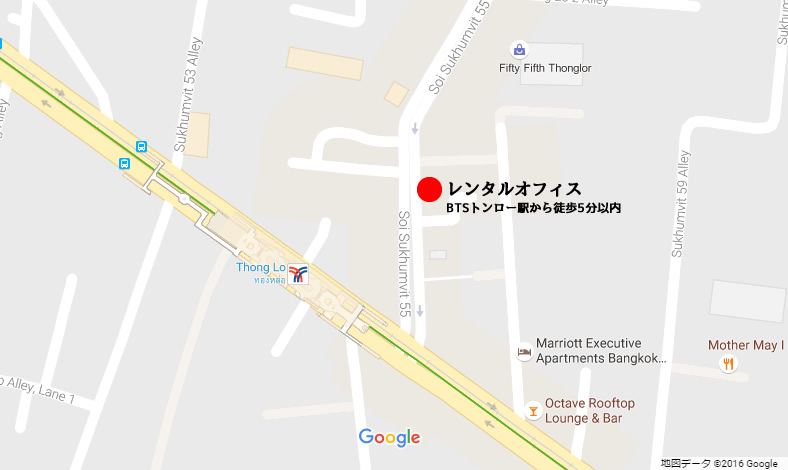 バンコク中心部にあるトンロー通り(スクンビット通りソイ55)に面した場所で、現在レンタルオフィススペースの入居者を募集中です。