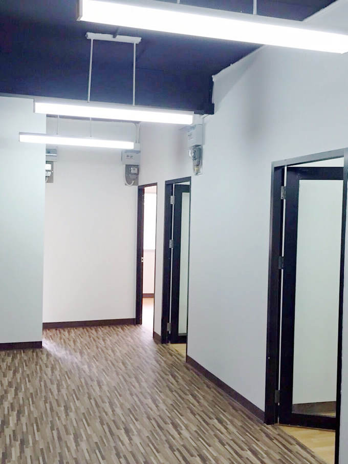 BTSトンロー駅から徒歩5分圏内の大通りに面したこのオフィスは、2階スペースが4部屋に別れておりそれぞれのレンタルが可能(月額2万5000バーツ~)。3階スペースが53平米のワンフロアー(月額12万バーツ)。内装工事は2016年2月に完了しており、清潔感溢れるオフィススペースとなっています。