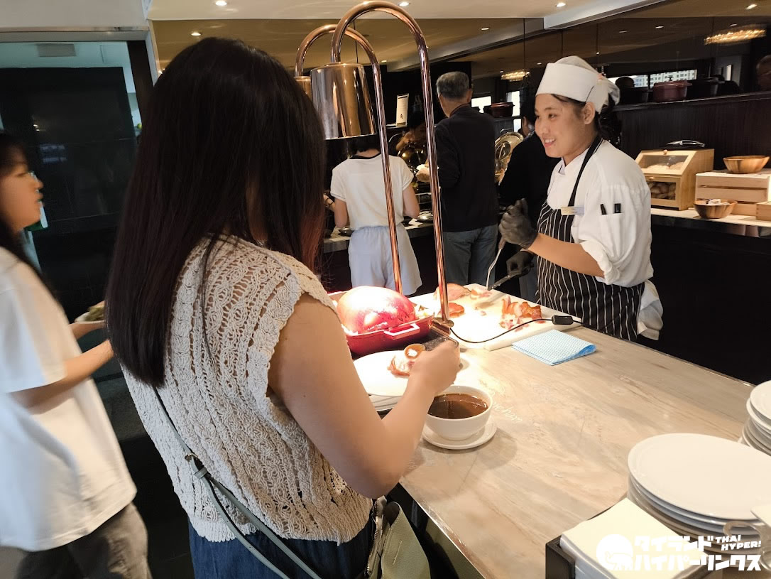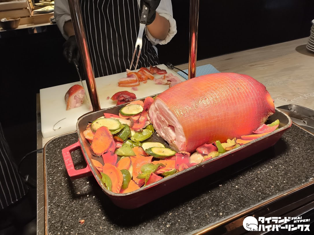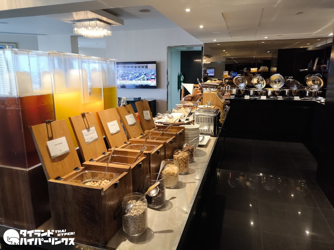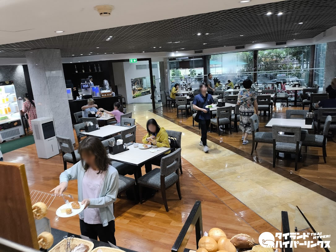 ホテルに宿泊する楽しみのひとつが朝食です。中でも大きなホテルの大会場での朝食はたまりません!下の写真はほんの一角。屋内だけでなく、チャオプラヤー川が目の前の屋外席も用意されています。