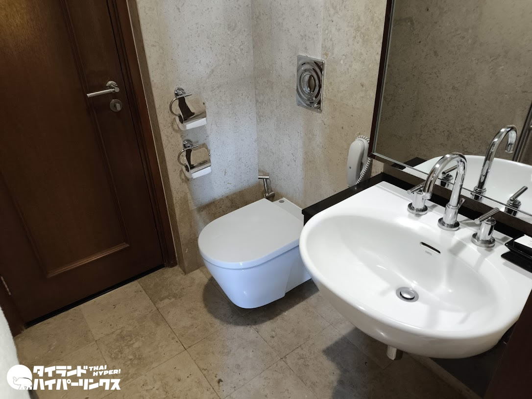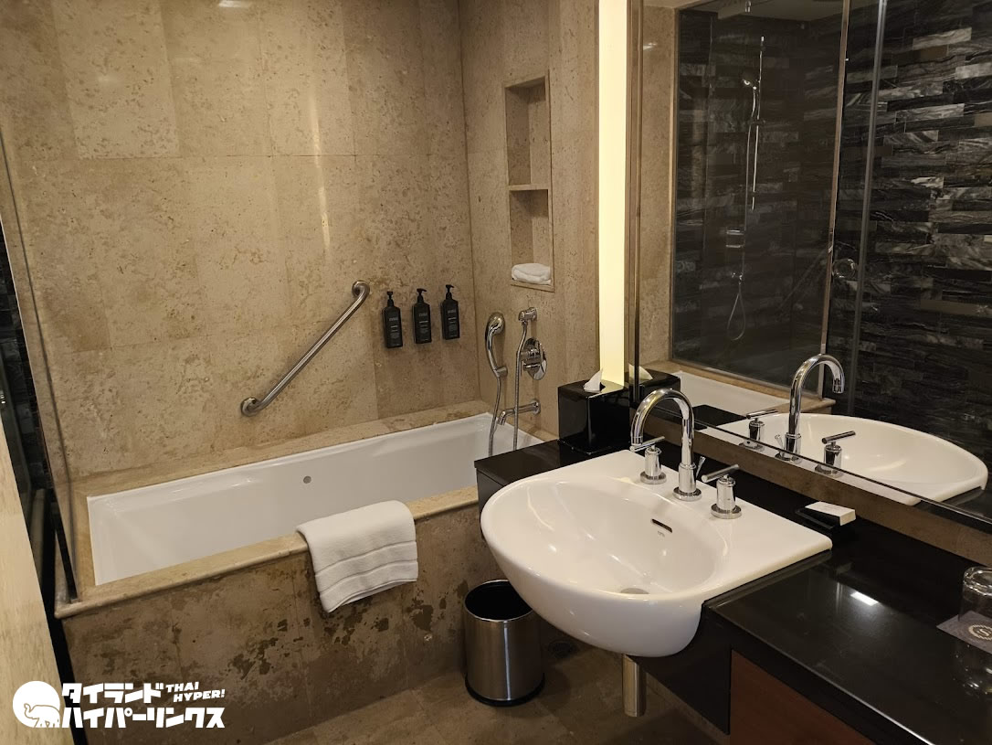 客室内は5つ星ホテルらしい重厚感のある内装で統一され、バスとトイレは別で、バスタブも完備。お湯の温度も量も十分です。