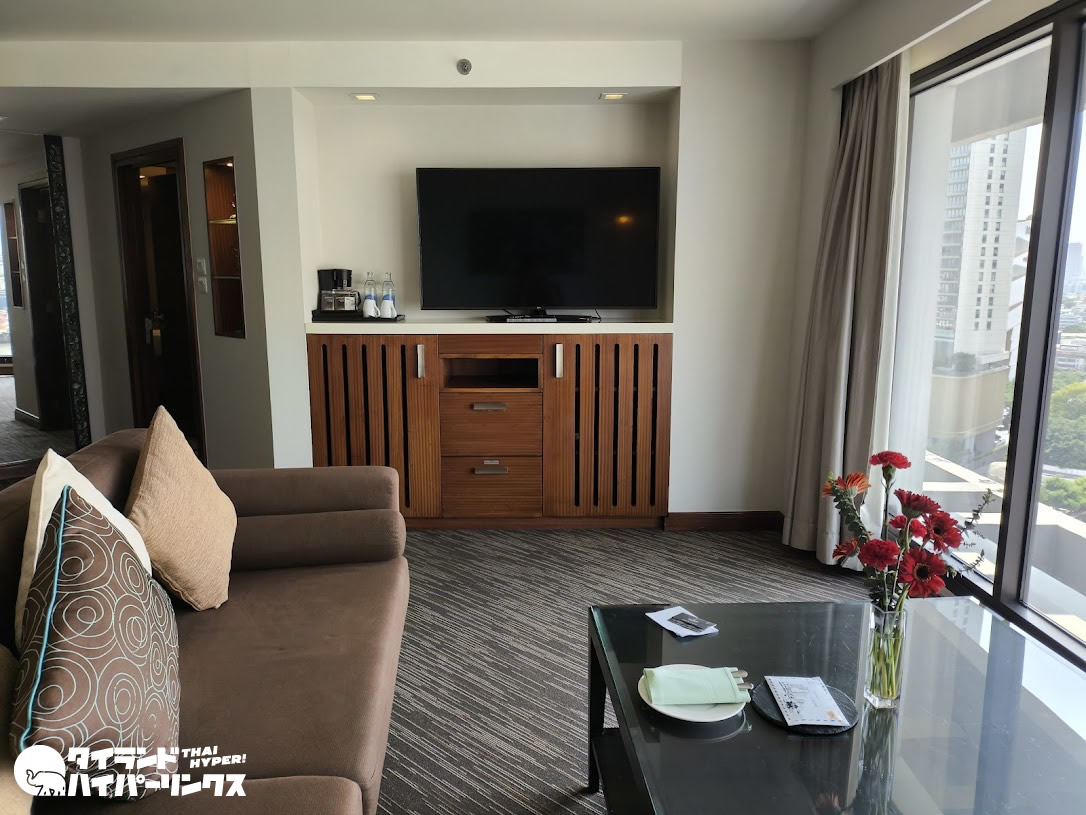 今回はエグゼクティブリバービュー・スイートルームというベッドルームとリビングルームが分かれたタイプの客室です。
