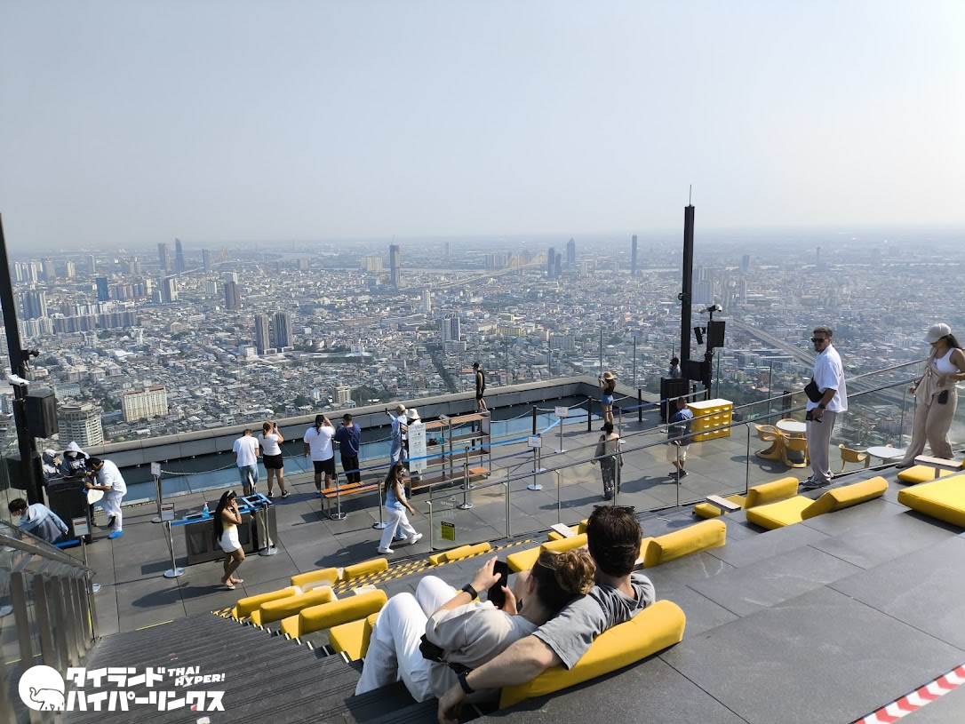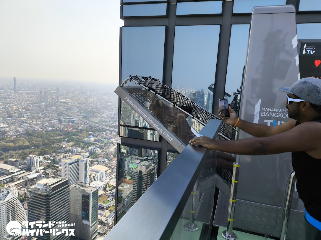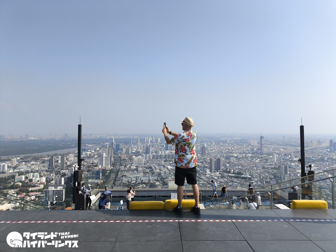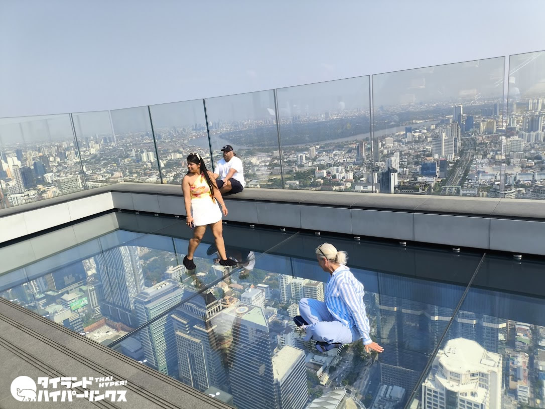 地上300メートルを超える高さからバンコクの街を見渡すことができる人気スポットで、特にガラス張りの床は印象的です。見た目はかなりスリリングですが、実際に行ってみると意外と行けました。